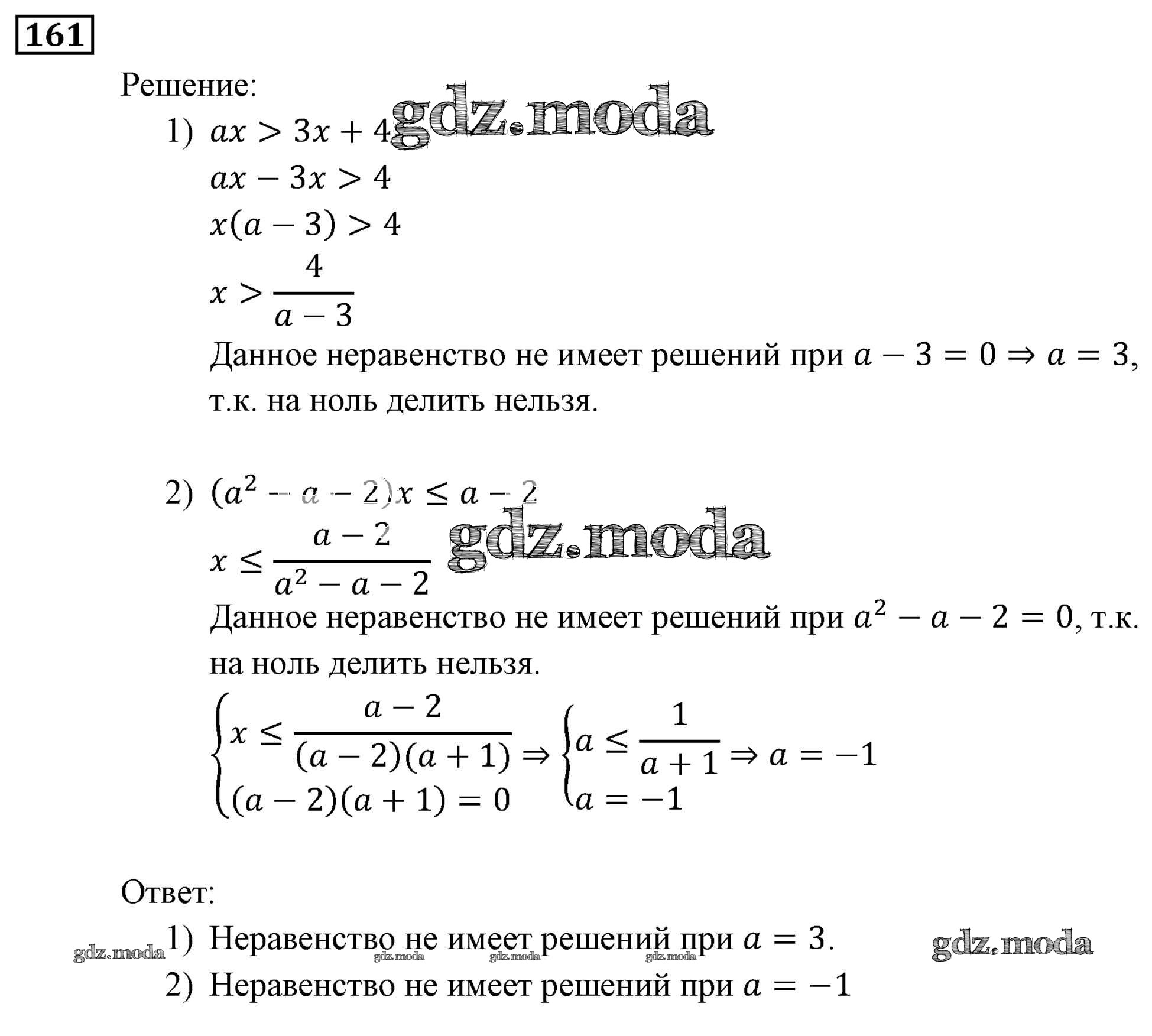 ОТВЕТ на задание № 161 Учебник по Алгебре 9 класс Мерзляк Алгоритм успеха
