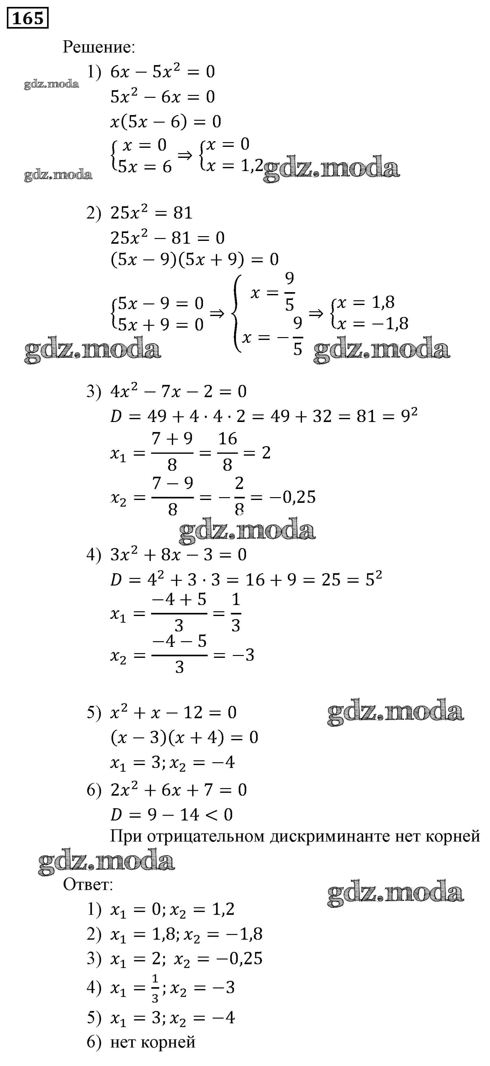 ОТВЕТ на задание № 165 Учебник по Алгебре 9 класс Мерзляк Алгоритм успеха
