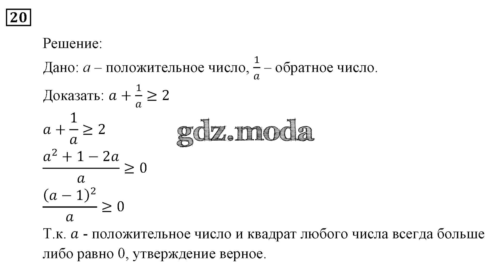 ОТВЕТ на задание № 20 Учебник по Алгебре 9 класс Мерзляк Алгоритм успеха
