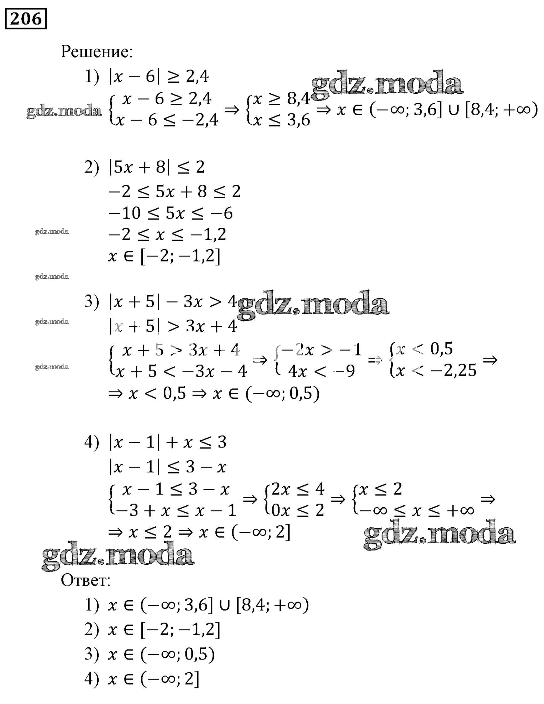 ОТВЕТ на задание № 206 Учебник по Алгебре 9 класс Мерзляк Алгоритм успеха