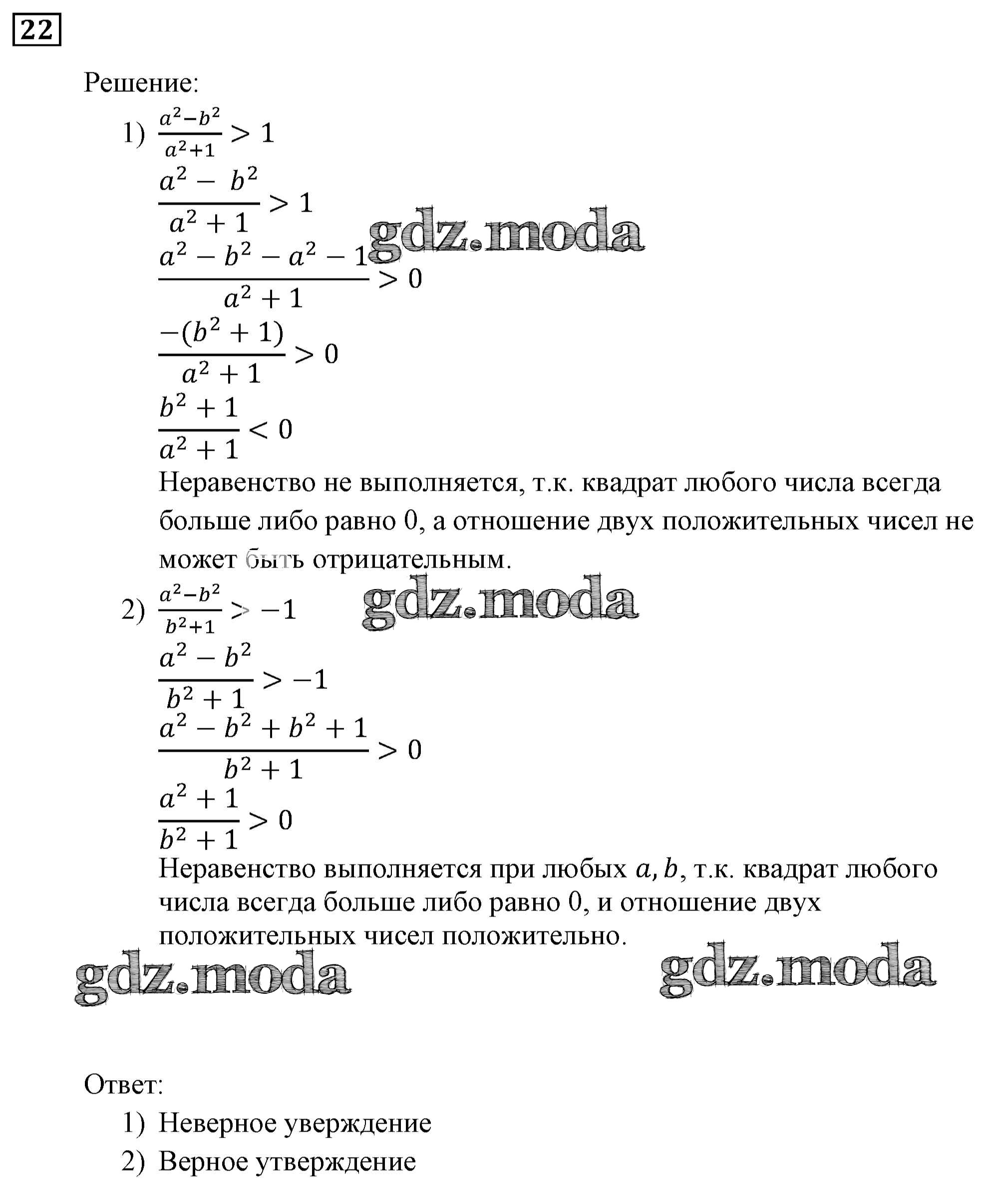 ОТВЕТ на задание № 22 Учебник по Алгебре 9 класс Мерзляк Алгоритм успеха