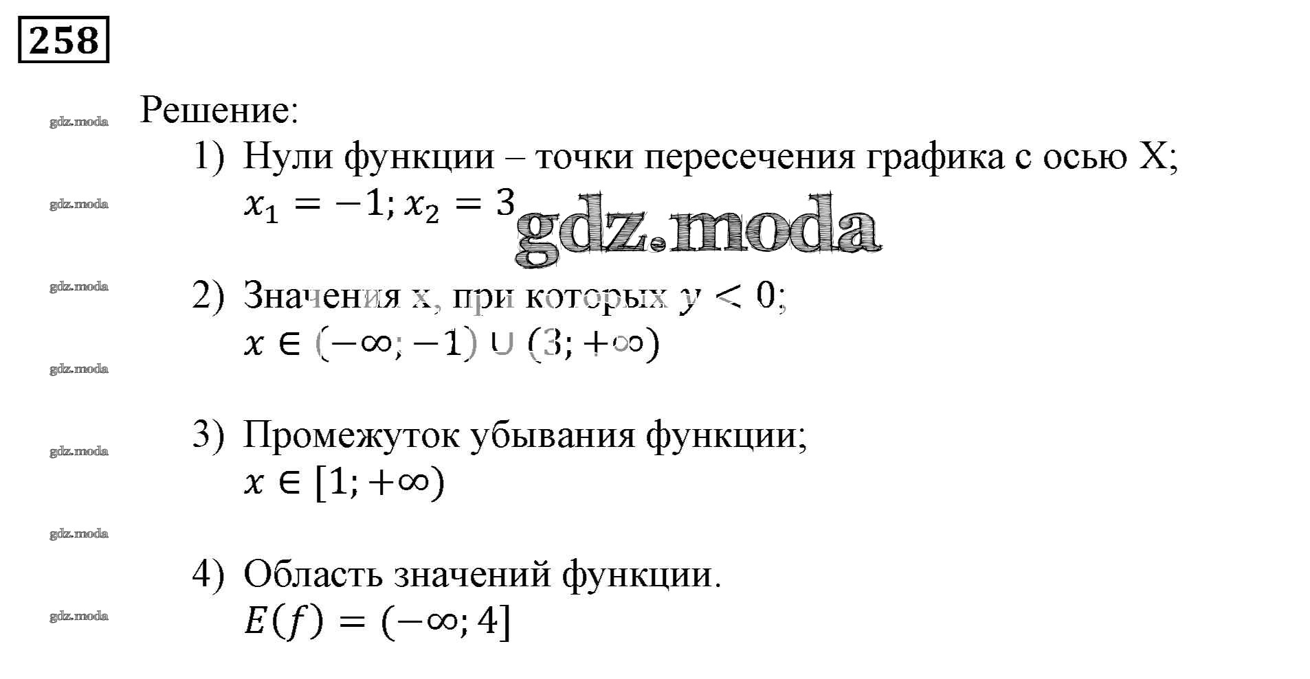 ОТВЕТ на задание № 258 Учебник по Алгебре 9 класс Мерзляк Алгоритм успеха
