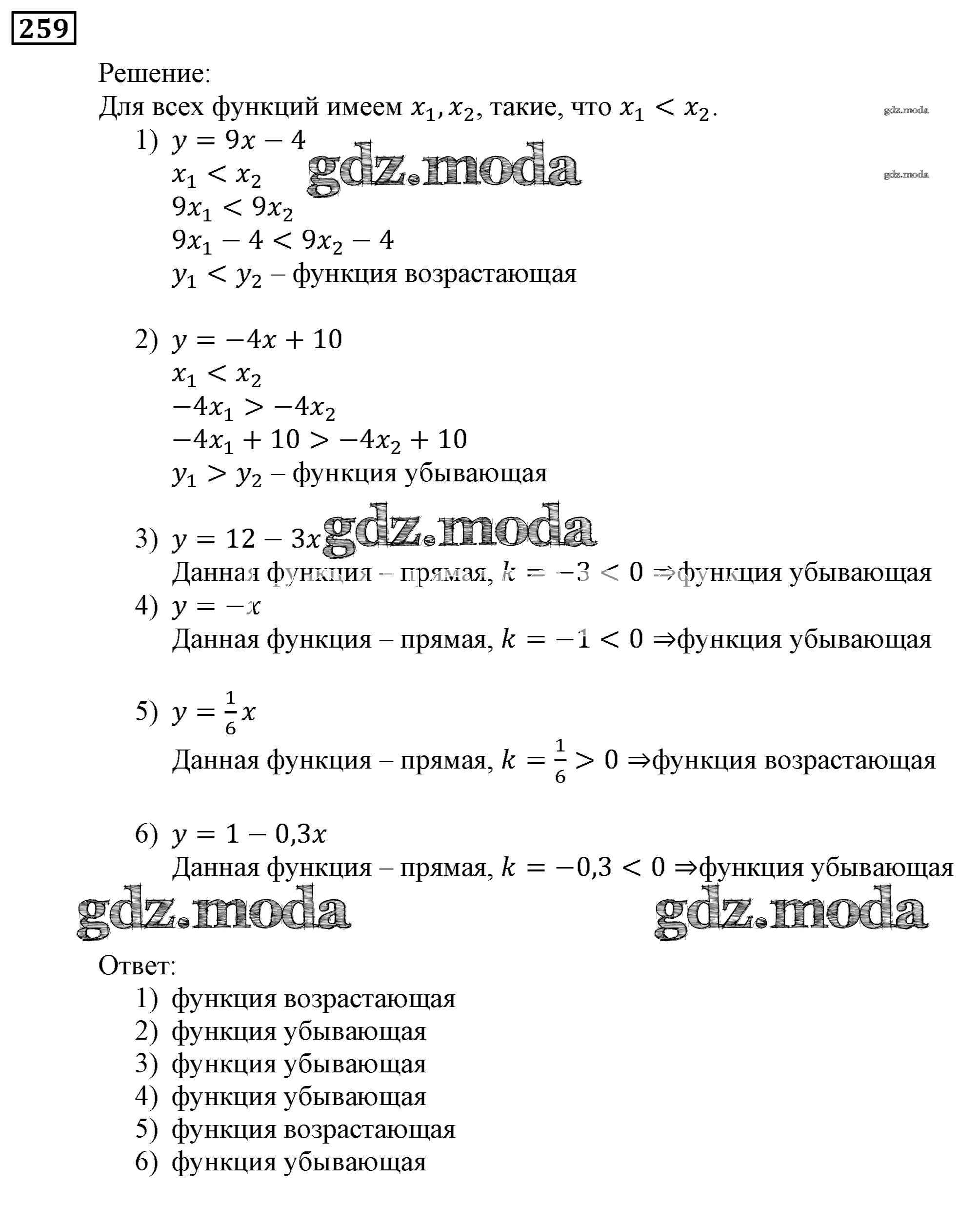 ОТВЕТ на задание № 259 Учебник по Алгебре 9 класс Мерзляк Алгоритм успеха
