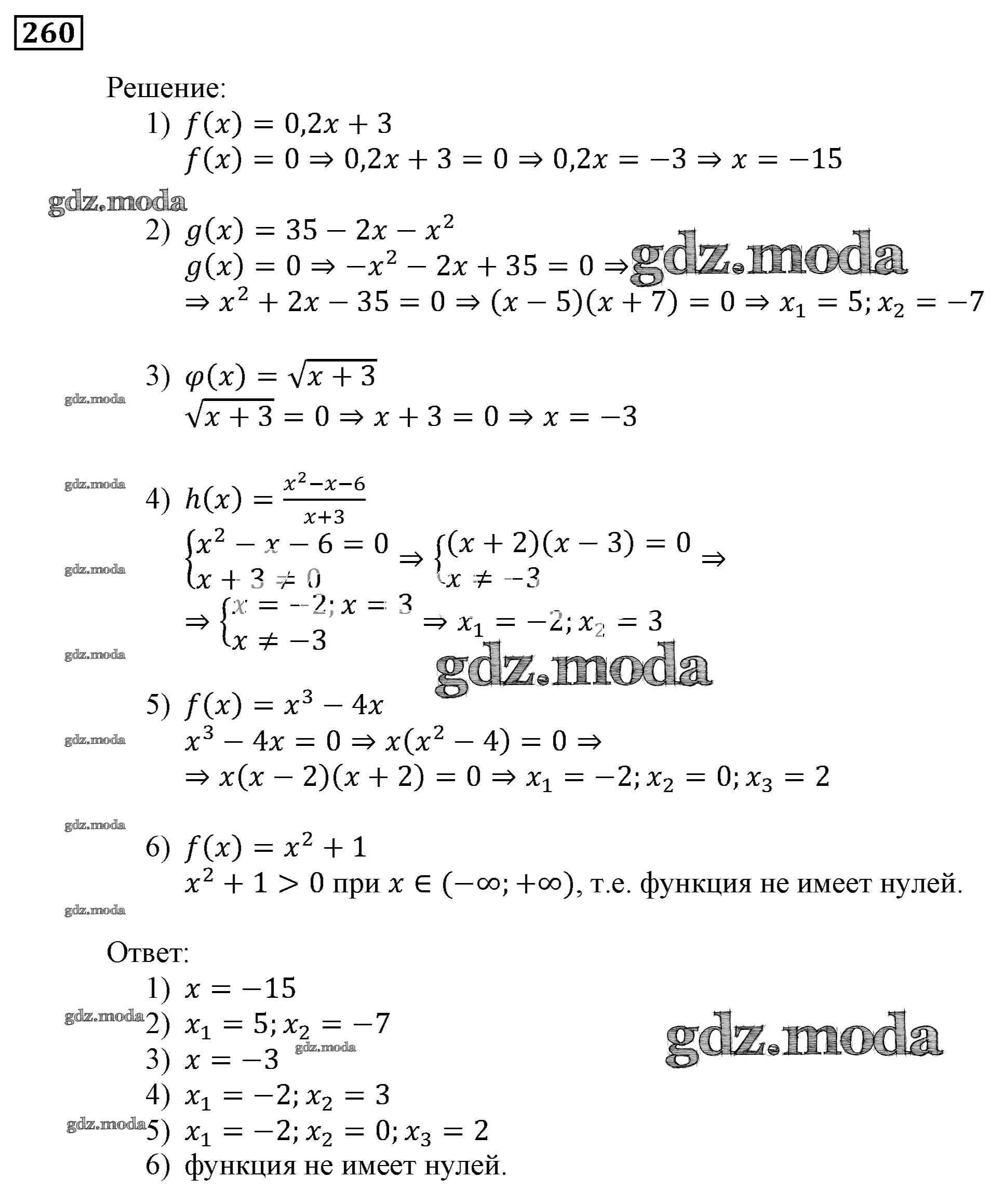 ОТВЕТ на задание № 260 Учебник по Алгебре 9 класс Мерзляк Алгоритм успеха
