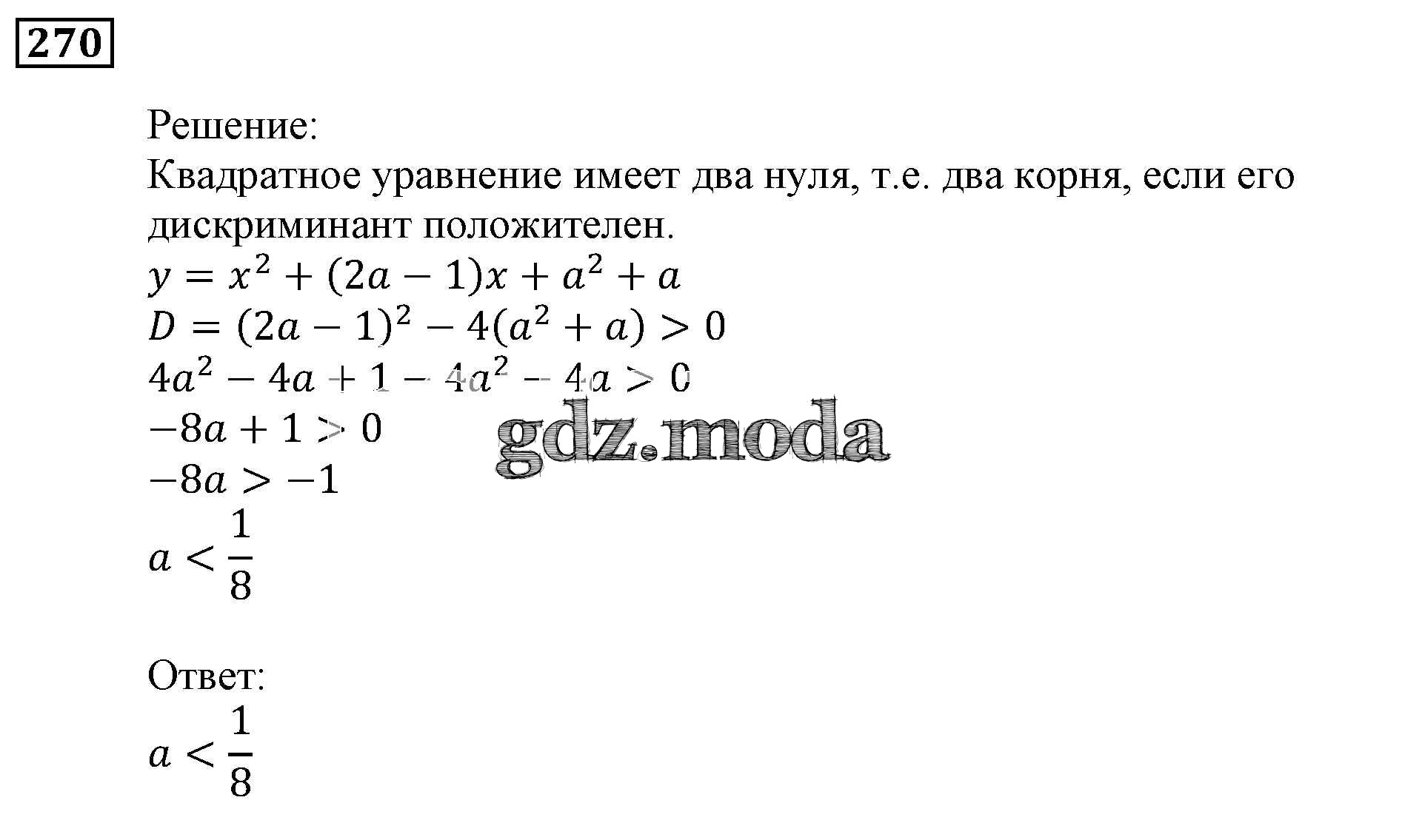 ОТВЕТ на задание № 270 Учебник по Алгебре 9 класс Мерзляк Алгоритм успеха