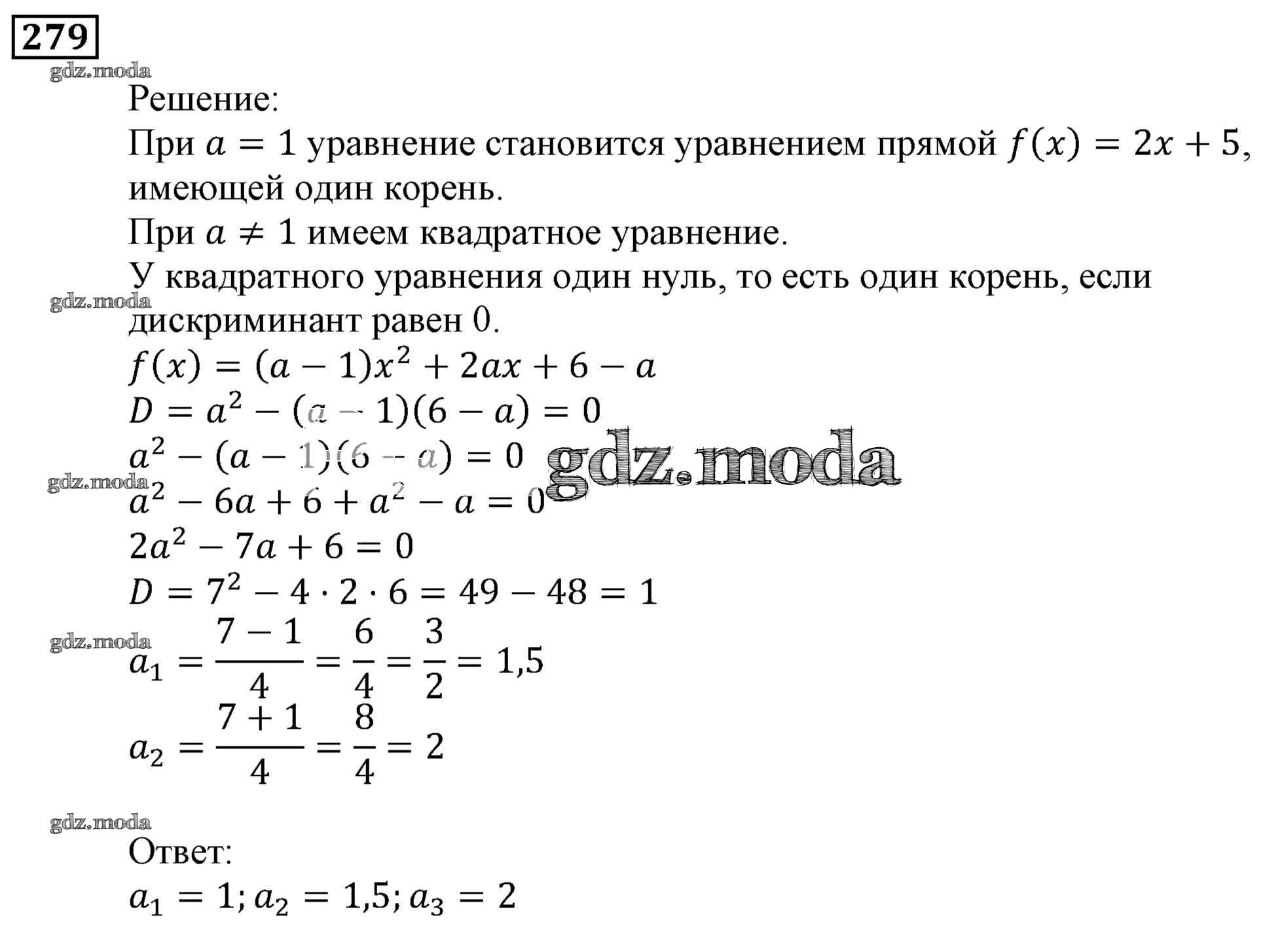 ОТВЕТ на задание № 279 Учебник по Алгебре 9 класс Мерзляк Алгоритм успеха