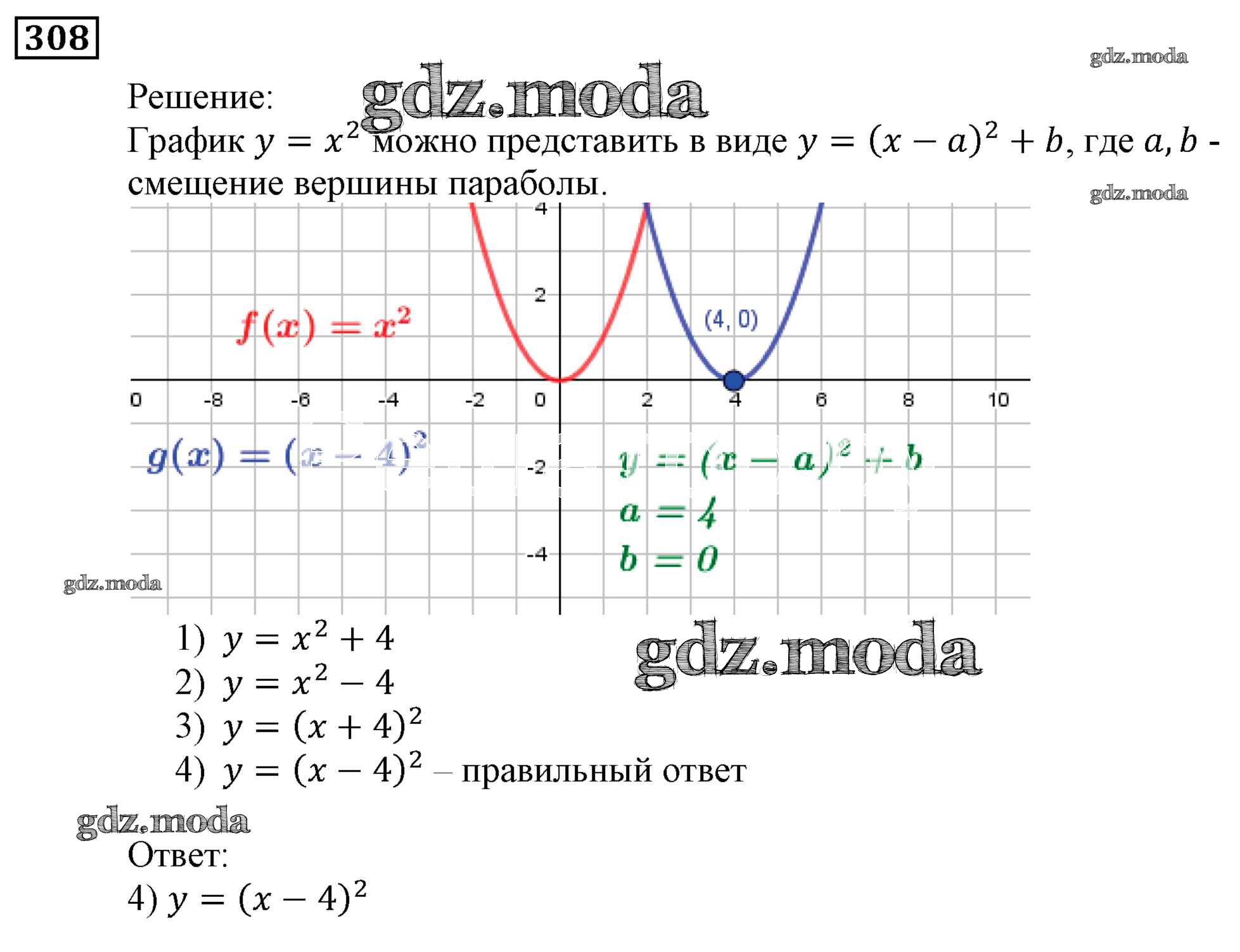 ОТВЕТ на задание № 308 Учебник по Алгебре 9 класс Мерзляк Алгоритм успеха