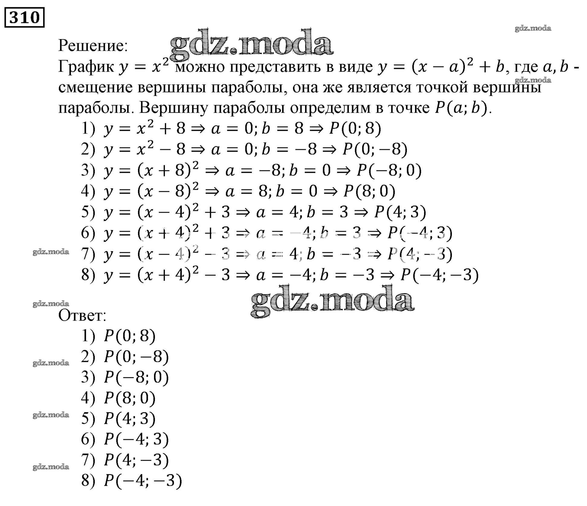 ОТВЕТ на задание № 310 Учебник по Алгебре 9 класс Мерзляк Алгоритм успеха