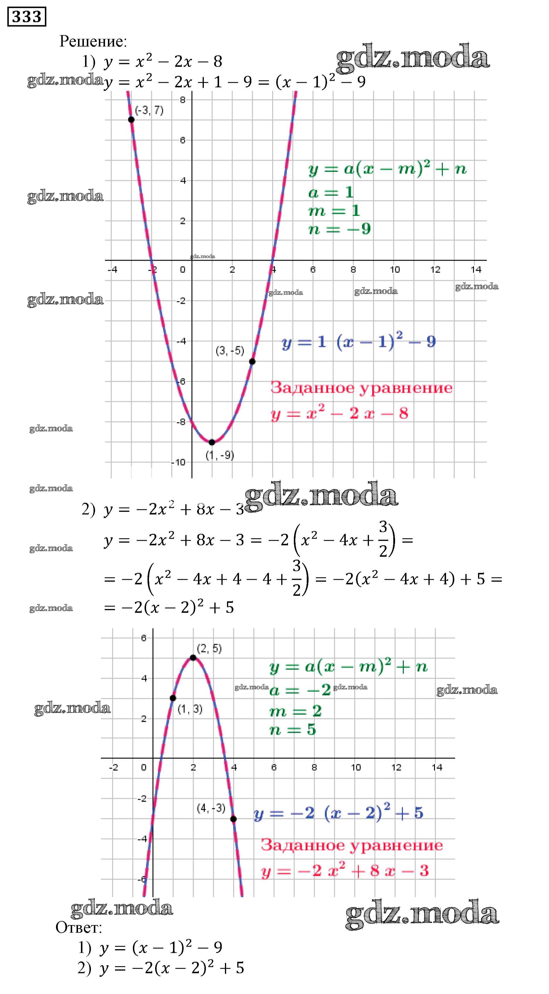 ОТВЕТ на задание № 333 Учебник по Алгебре 9 класс Мерзляк Алгоритм успеха