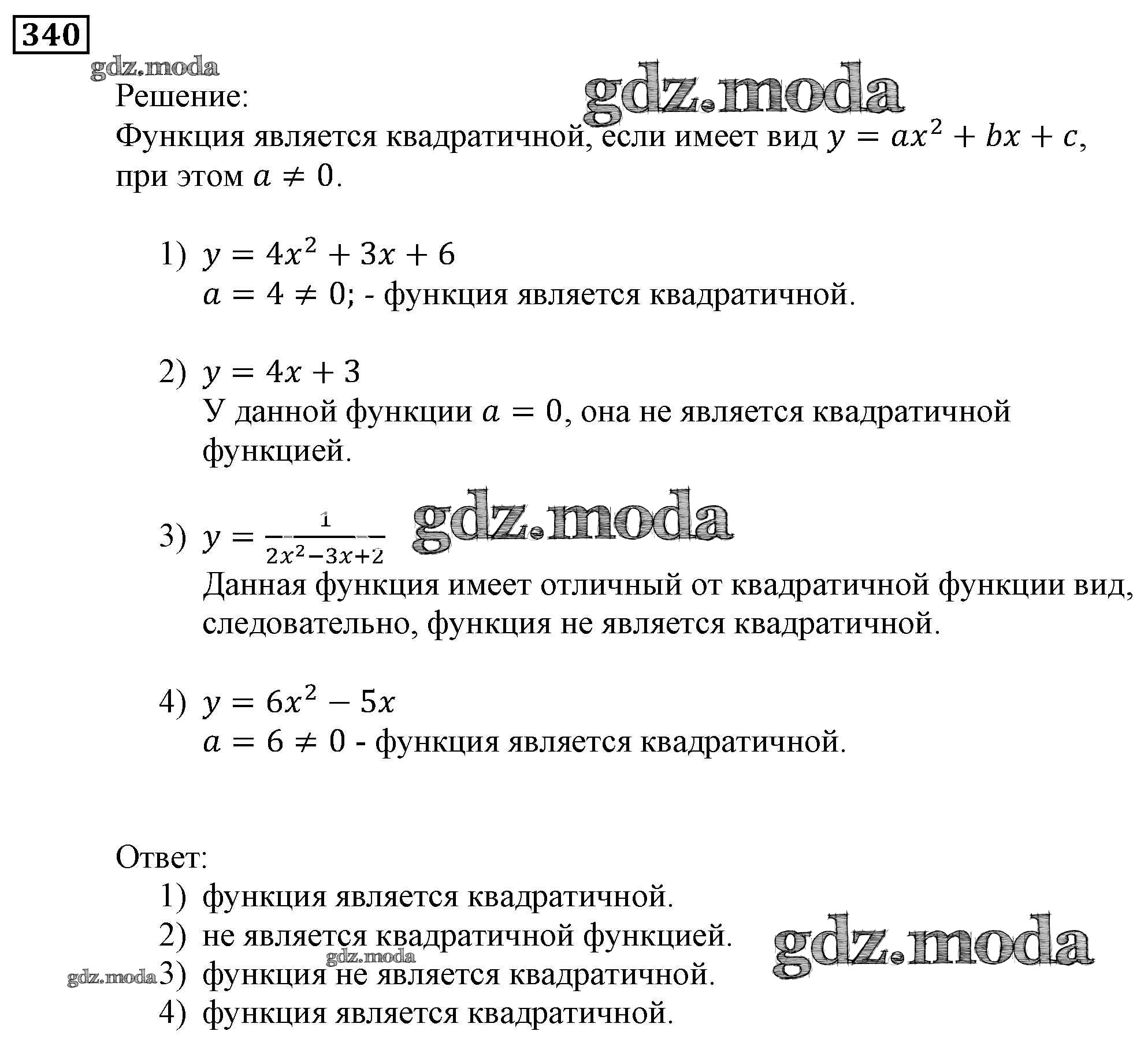 ОТВЕТ на задание № 340 Учебник по Алгебре 9 класс Мерзляк Алгоритм успеха