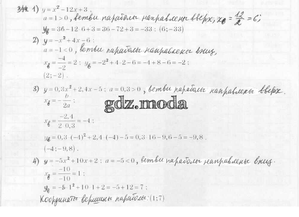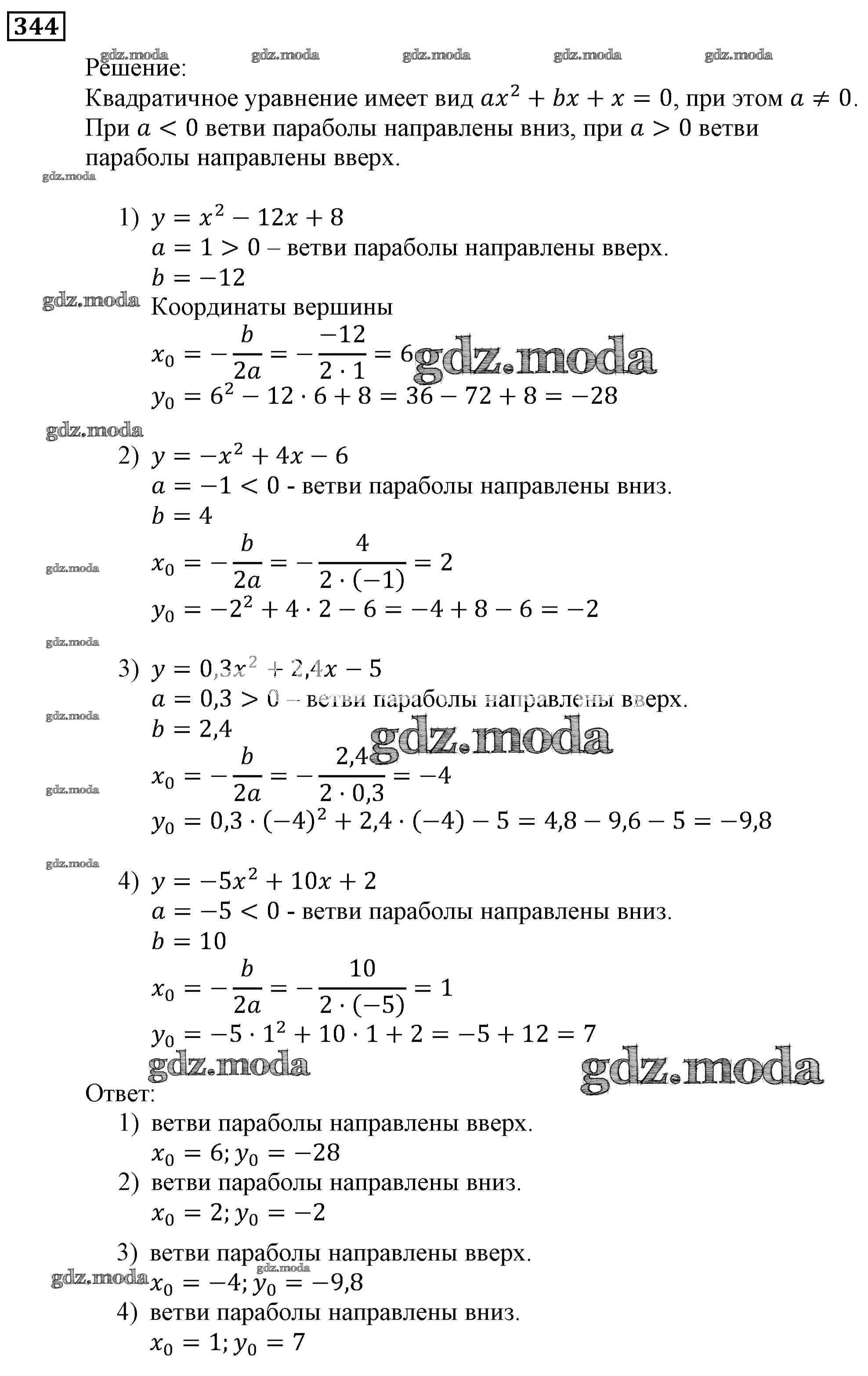 ОТВЕТ на задание № 344 Учебник по Алгебре 9 класс Мерзляк Алгоритм успеха