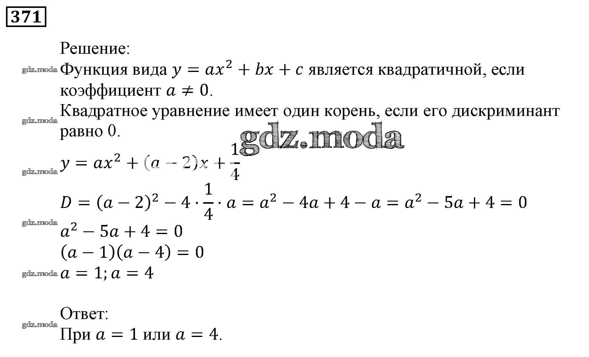 ОТВЕТ на задание № 371 Учебник по Алгебре 9 класс Мерзляк Алгоритм успеха