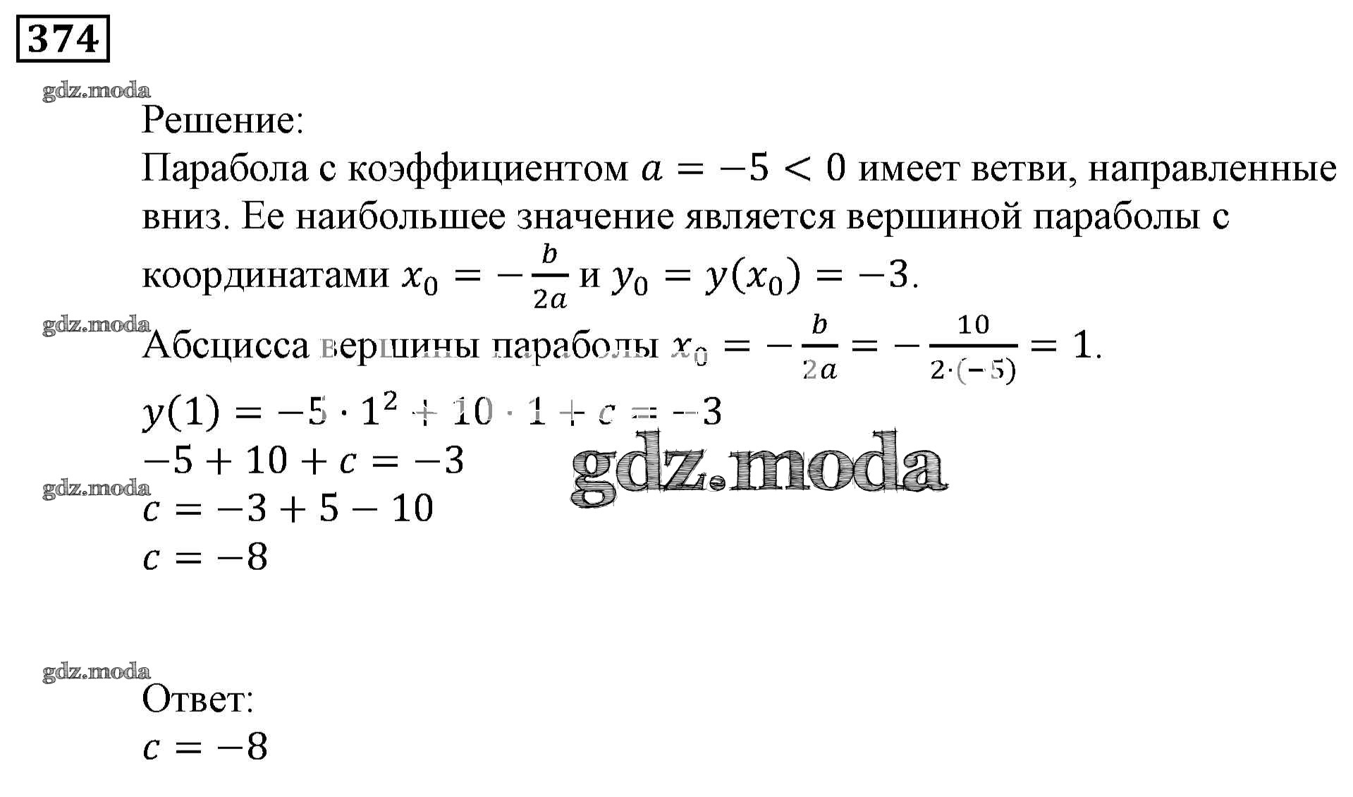 ОТВЕТ на задание № 374 Учебник по Алгебре 9 класс Мерзляк Алгоритм успеха
