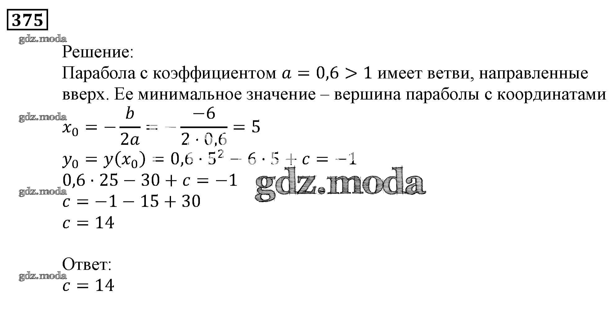 ОТВЕТ на задание № 375 Учебник по Алгебре 9 класс Мерзляк Алгоритм успеха
