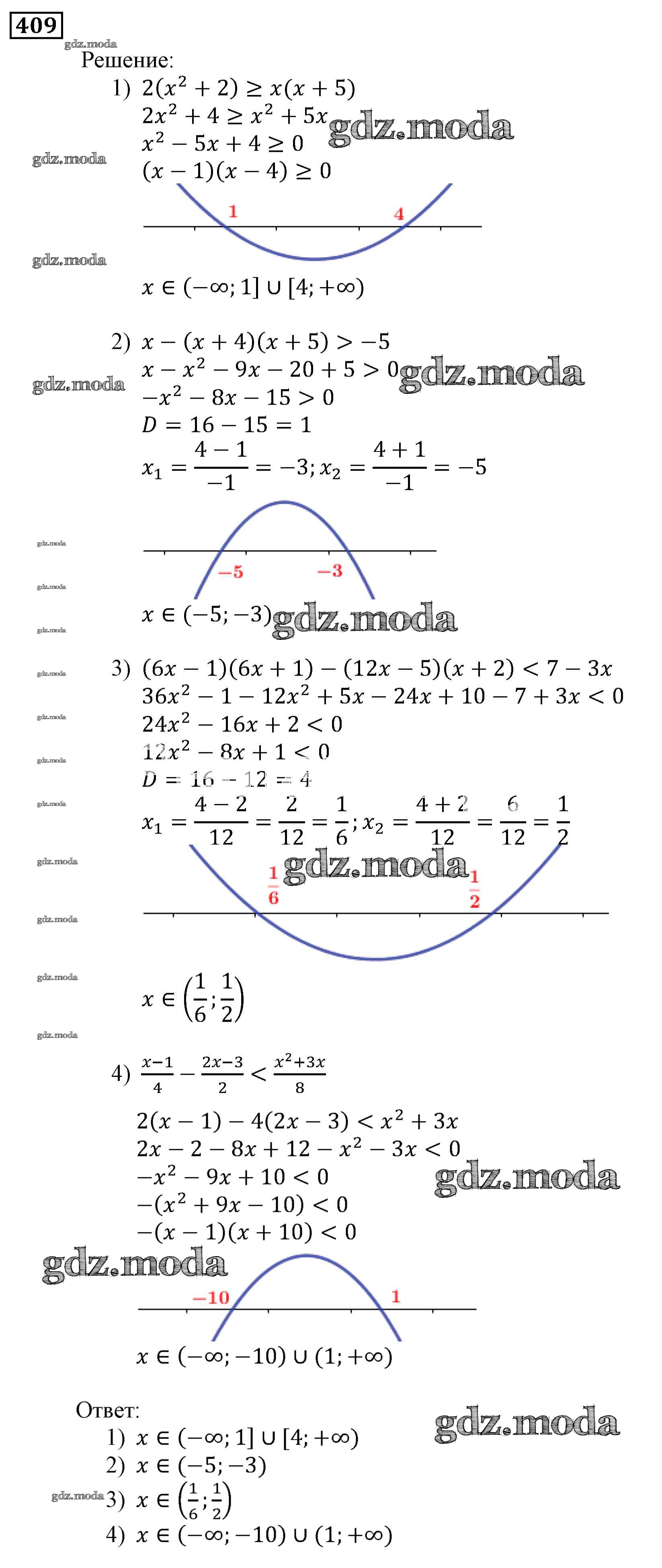 ОТВЕТ на задание № 409 Учебник по Алгебре 9 класс Мерзляк Алгоритм успеха