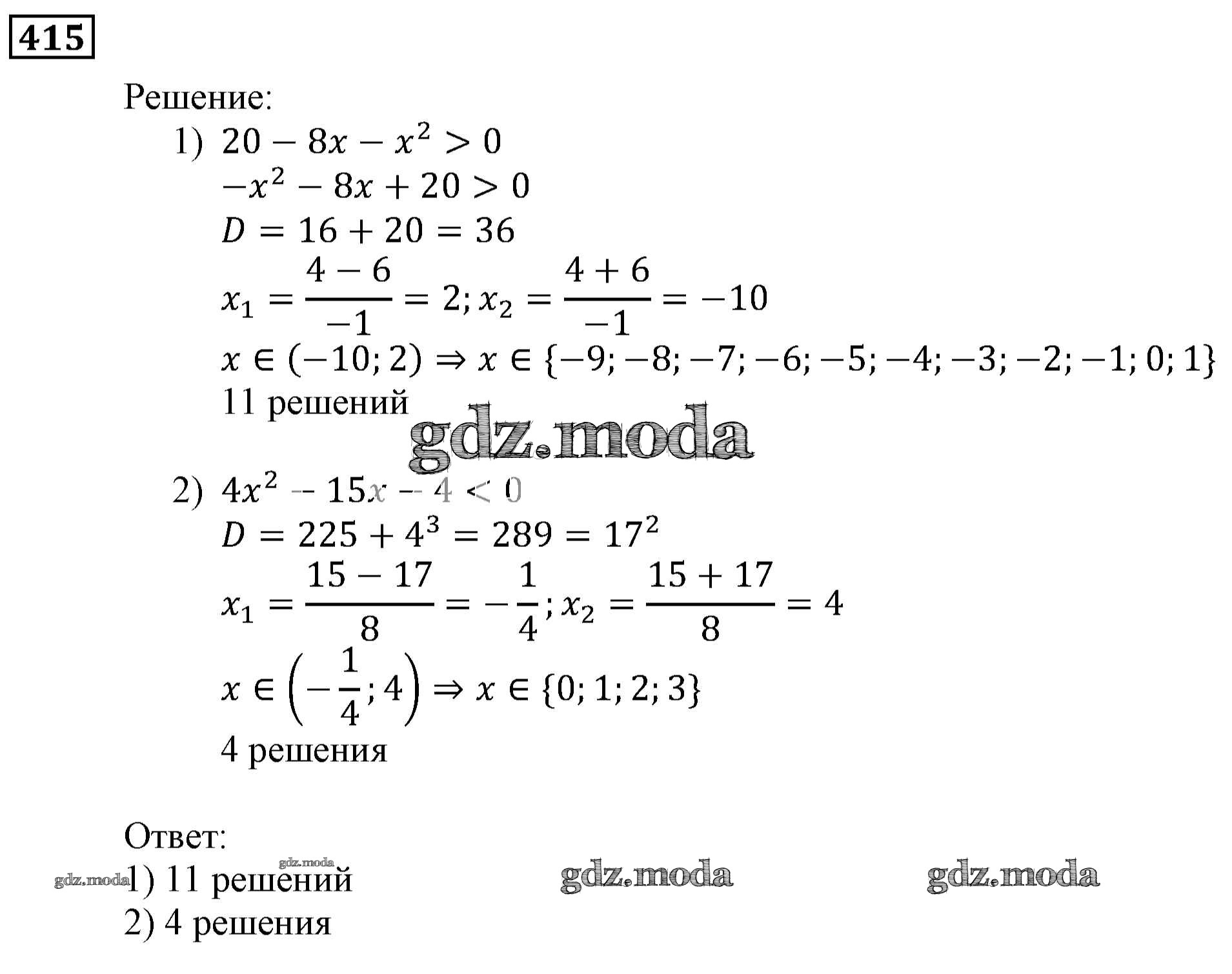 ОТВЕТ на задание № 415 Учебник по Алгебре 9 класс Мерзляк Алгоритм успеха