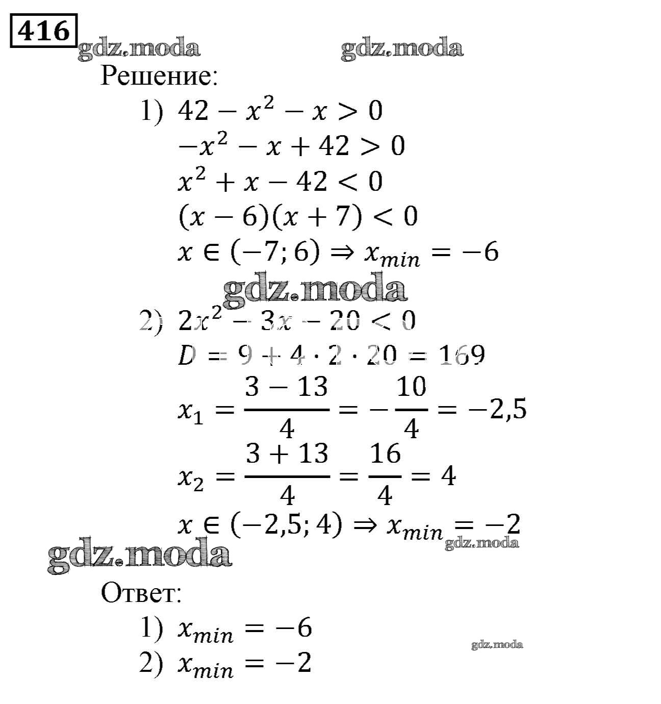 ОТВЕТ на задание № 416 Учебник по Алгебре 9 класс Мерзляк Алгоритм успеха