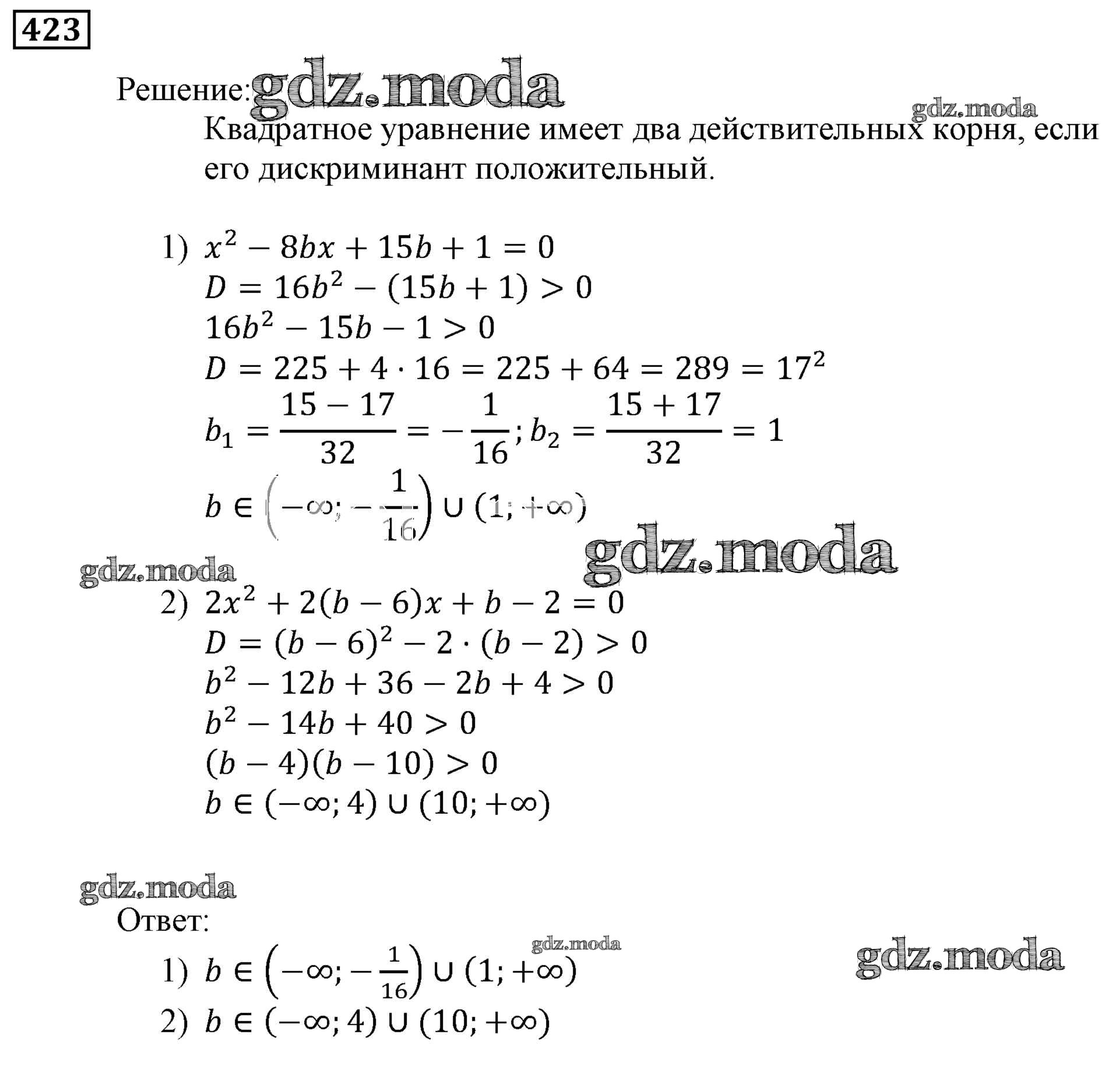ОТВЕТ на задание № 423 Учебник по Алгебре 9 класс Мерзляк Алгоритм успеха