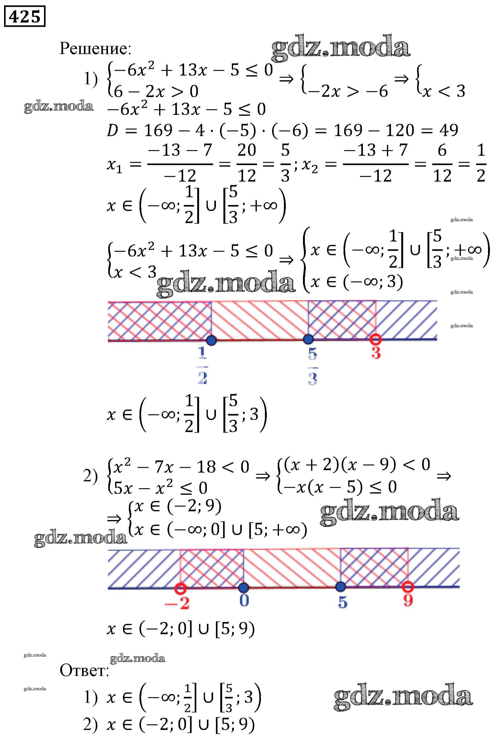 ОТВЕТ на задание № 425 Учебник по Алгебре 9 класс Мерзляк Алгоритм успеха