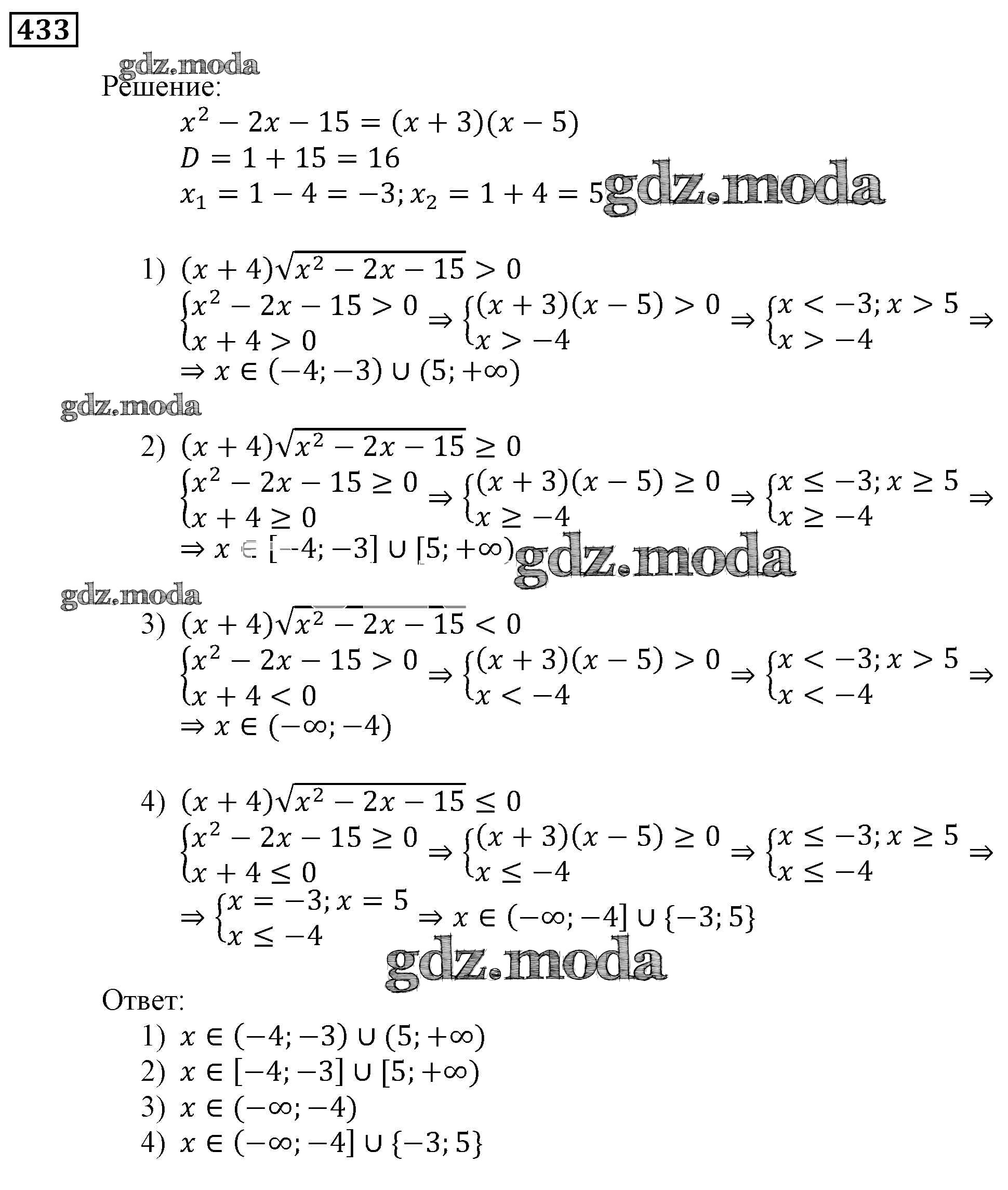 ОТВЕТ на задание № 433 Учебник по Алгебре 9 класс Мерзляк Алгоритм успеха