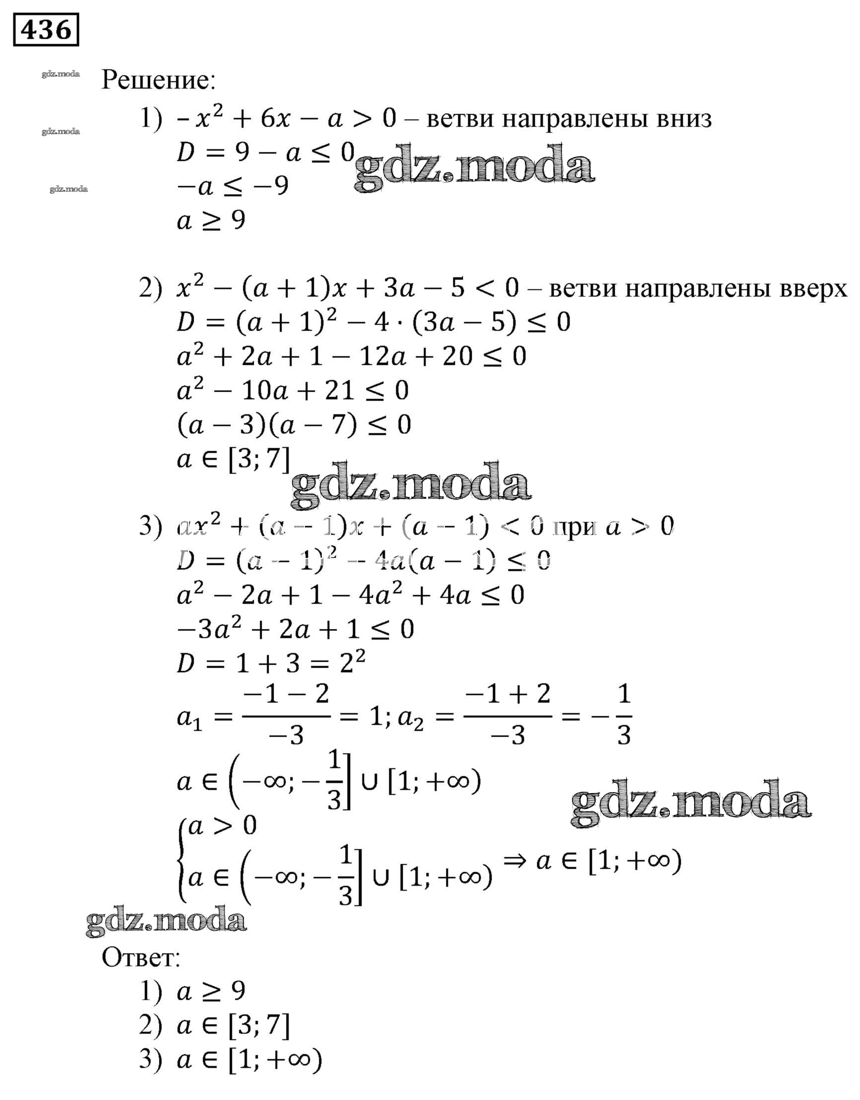 ОТВЕТ на задание № 436 Учебник по Алгебре 9 класс Мерзляк Алгоритм успеха
