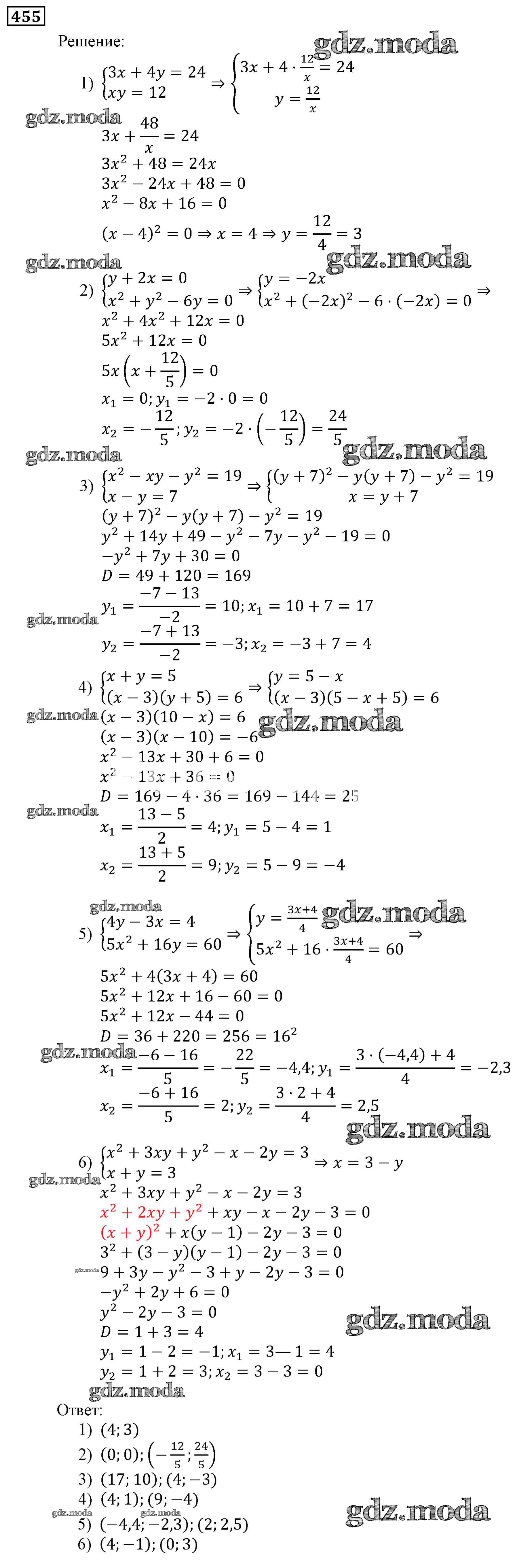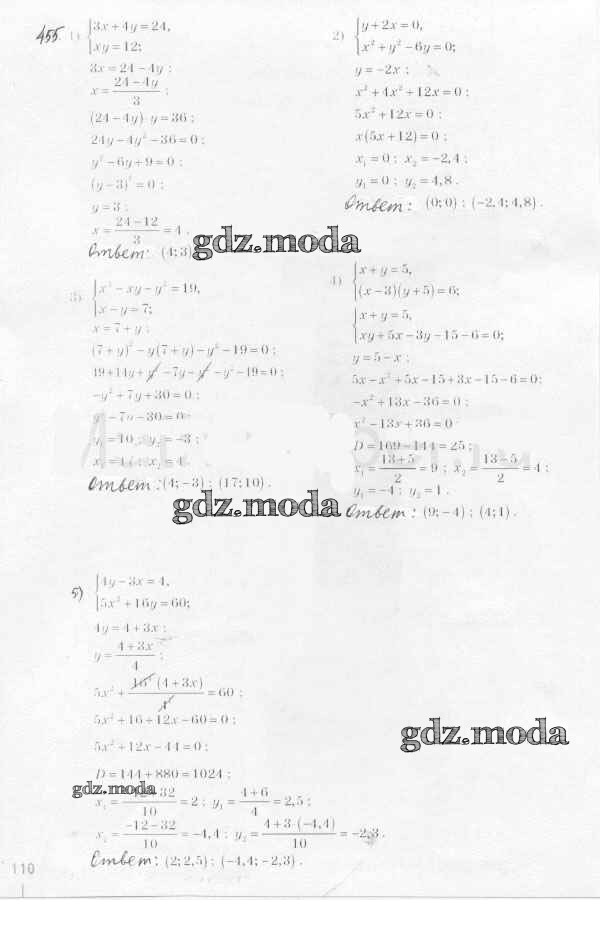 ОТВЕТ на задание № 455 Учебник по Алгебре 9 класс Мерзляк Алгоритм успеха