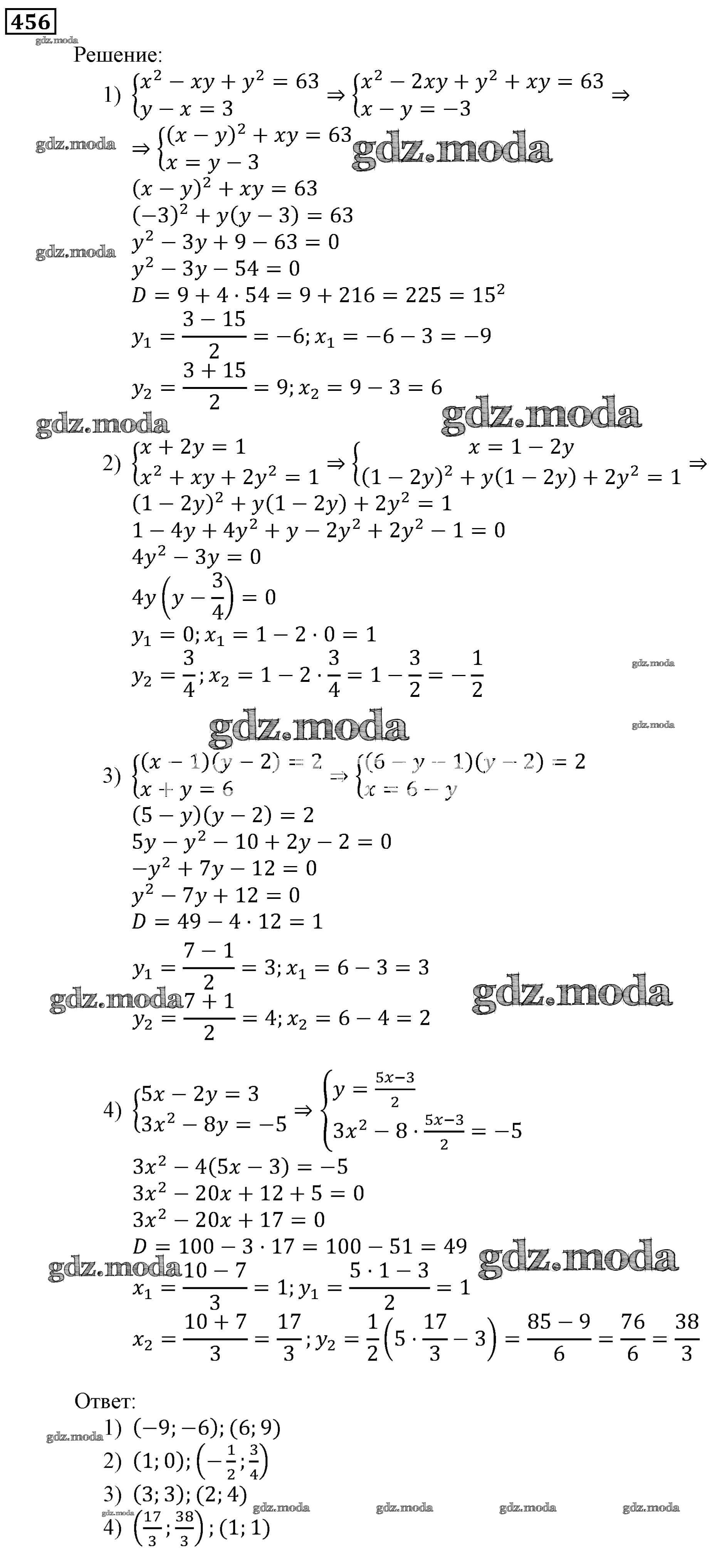 ОТВЕТ на задание № 456 Учебник по Алгебре 9 класс Мерзляк Алгоритм успеха