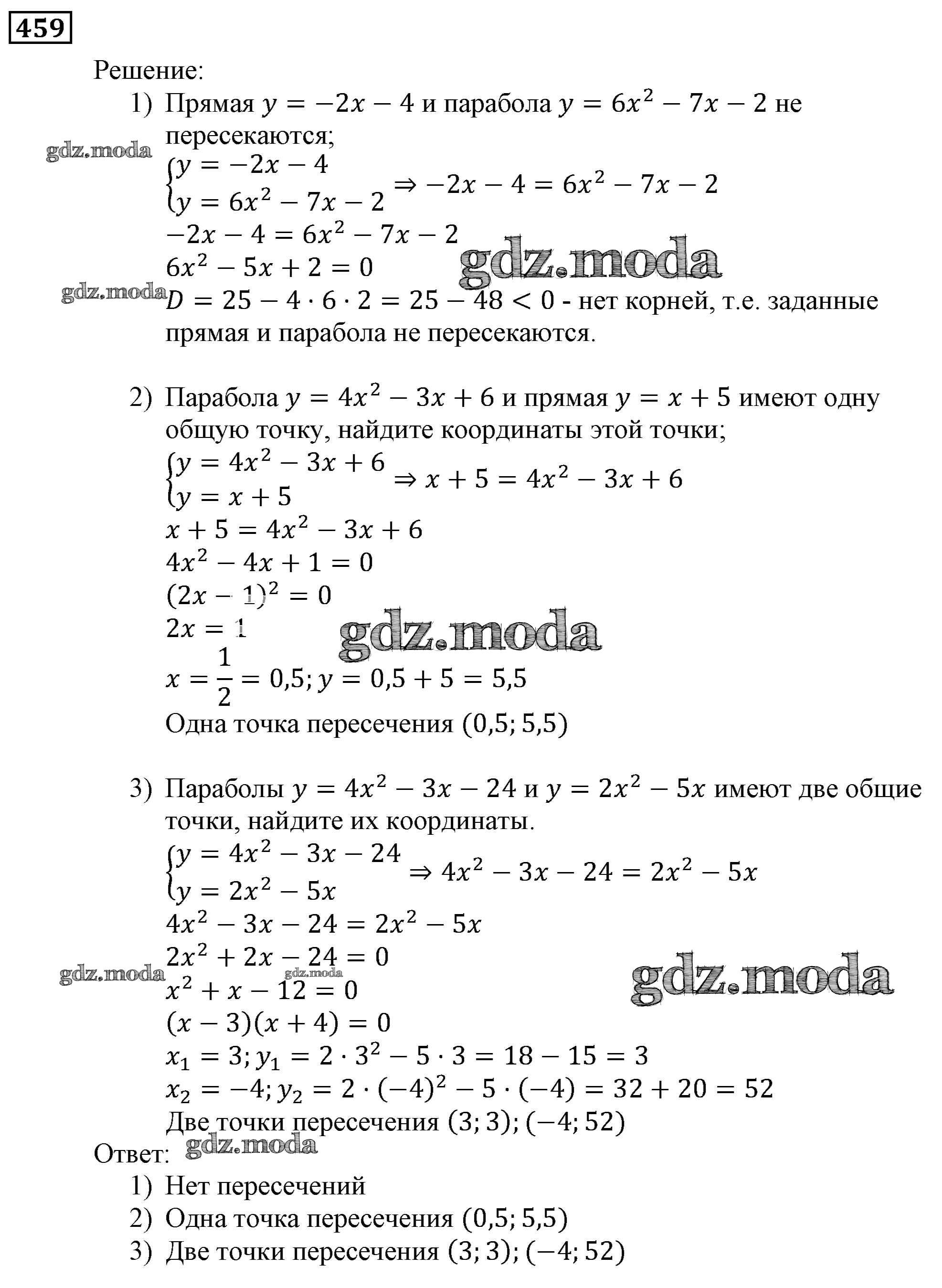 ОТВЕТ на задание № 459 Учебник по Алгебре 9 класс Мерзляк Алгоритм успеха