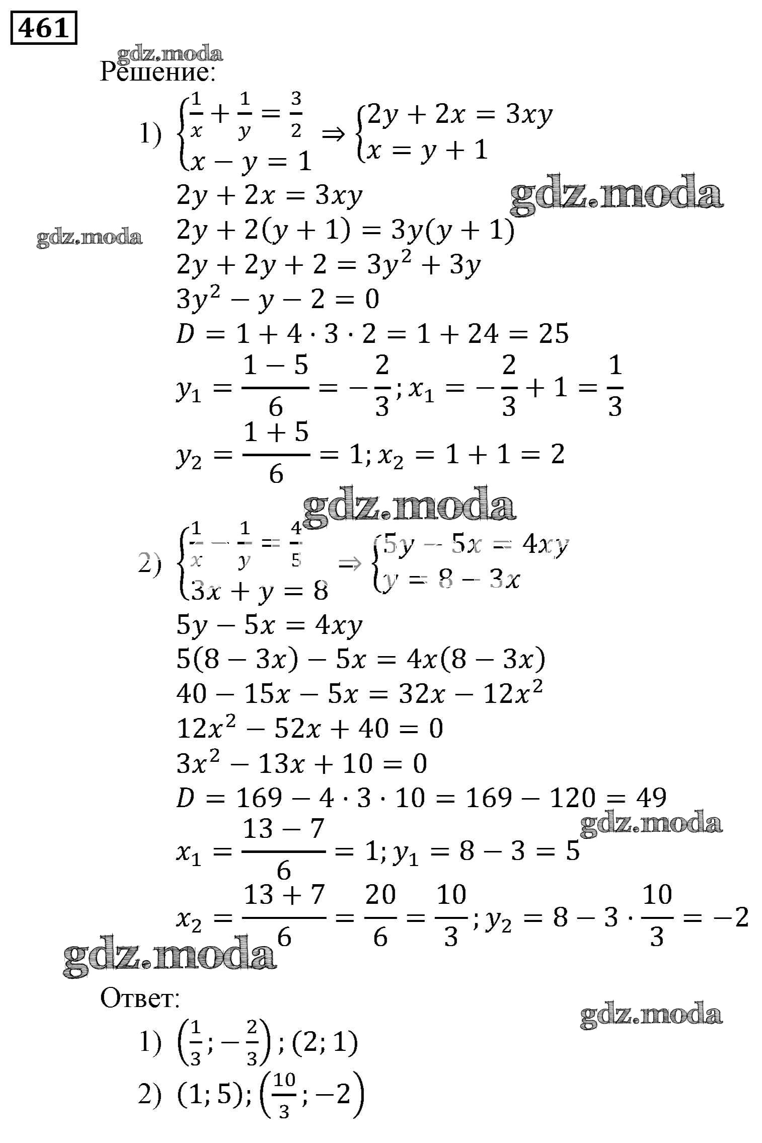 ОТВЕТ на задание № 461 Учебник по Алгебре 9 класс Мерзляк Алгоритм успеха
