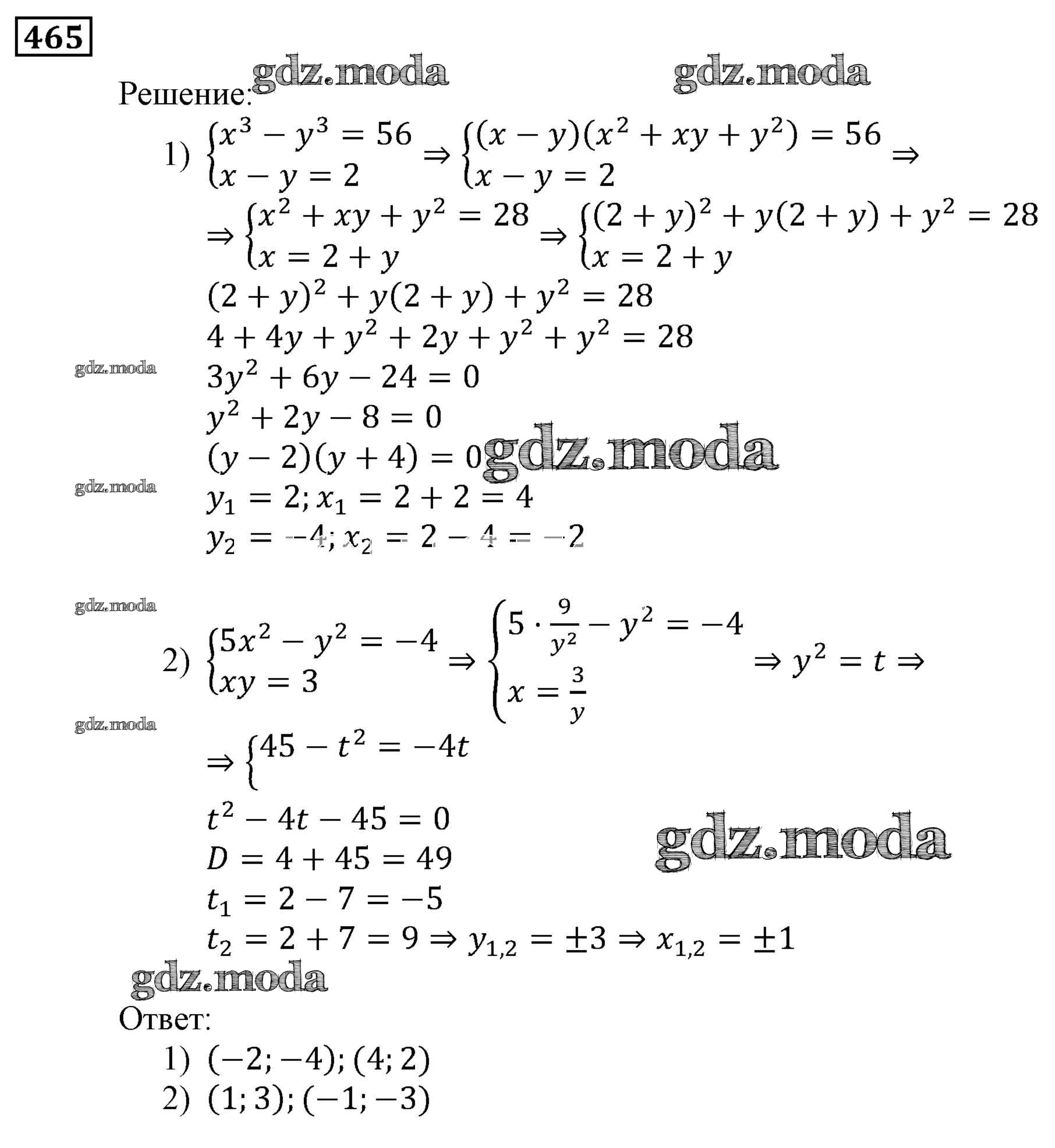 ОТВЕТ на задание № 465 Учебник по Алгебре 9 класс Мерзляк Алгоритм успеха