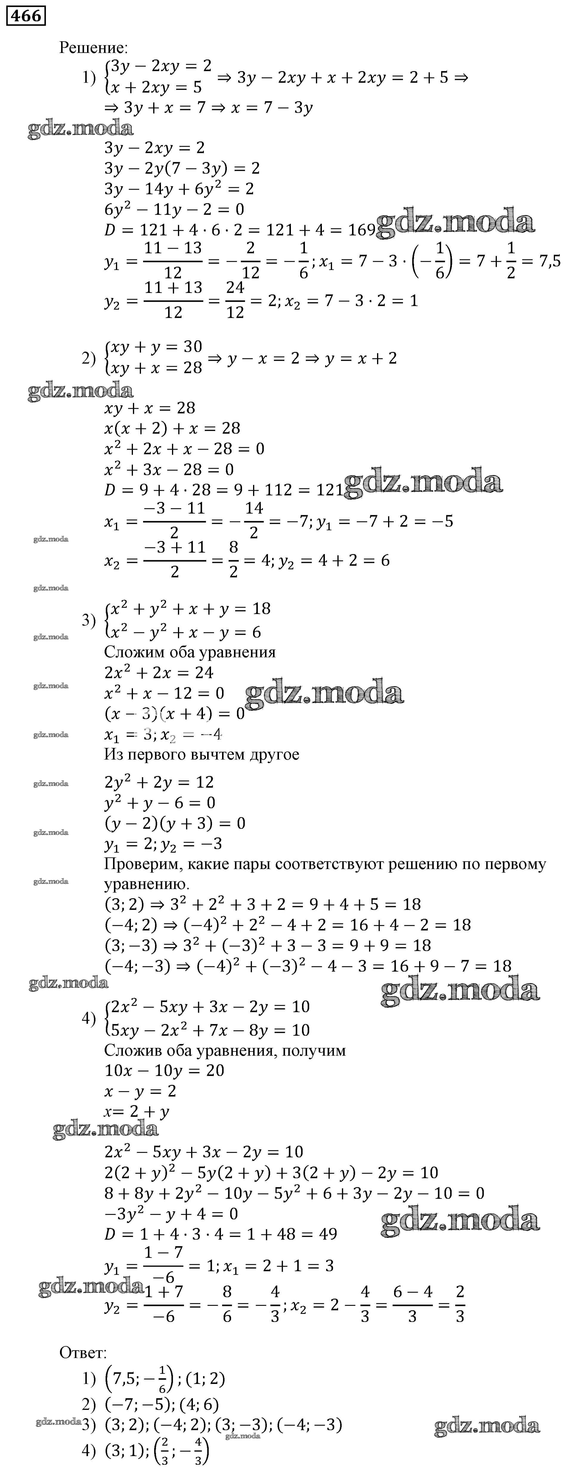 ОТВЕТ на задание № 466 Учебник по Алгебре 9 класс Мерзляк Алгоритм успеха