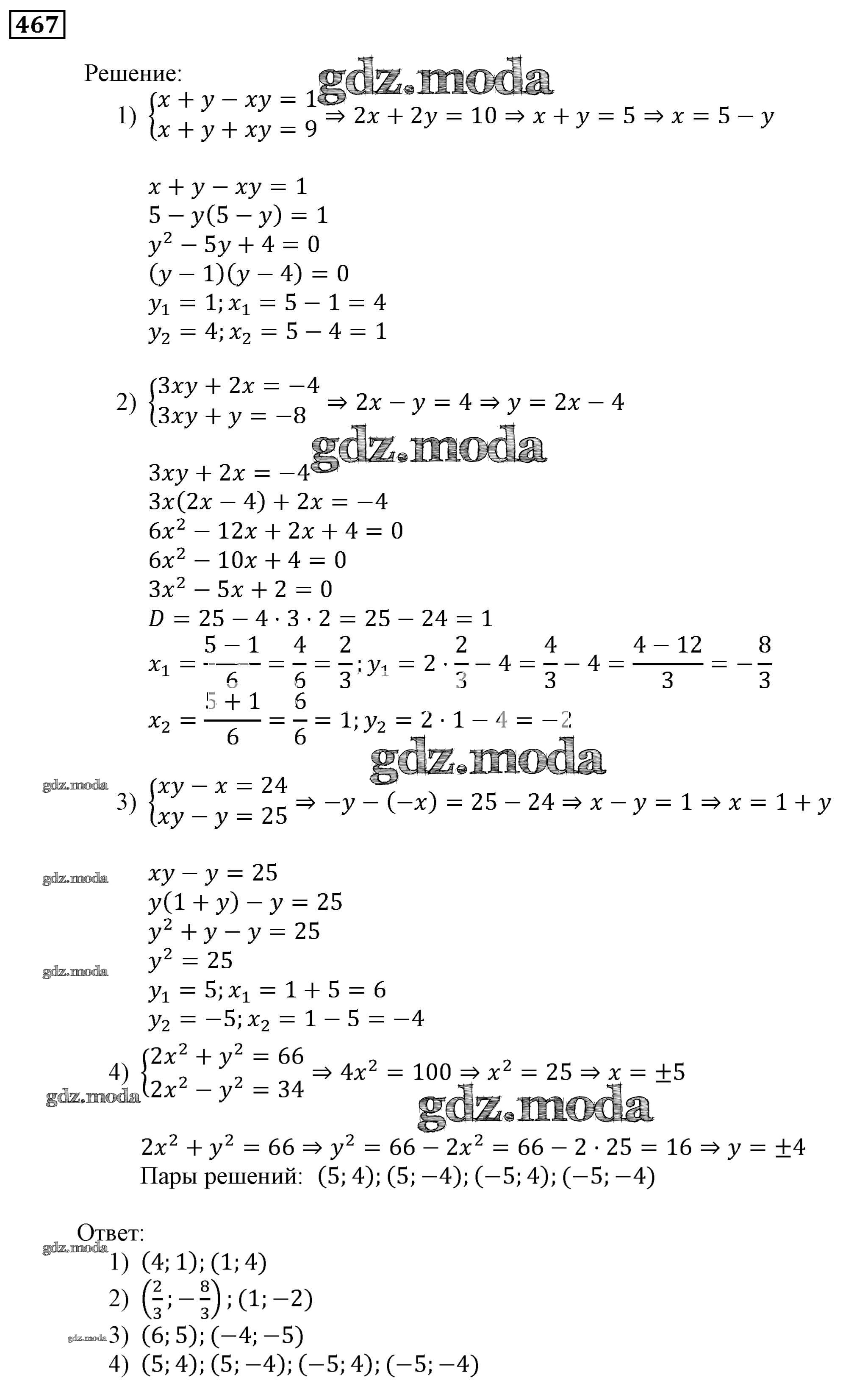 ОТВЕТ на задание № 467 Учебник по Алгебре 9 класс Мерзляк Алгоритм успеха