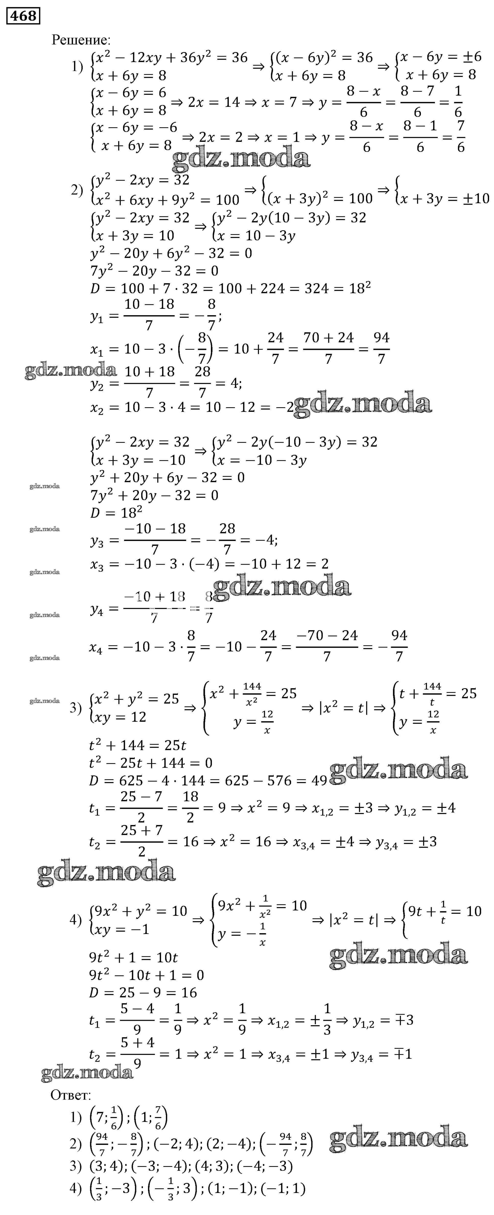 ОТВЕТ на задание № 468 Учебник по Алгебре 9 класс Мерзляк Алгоритм успеха