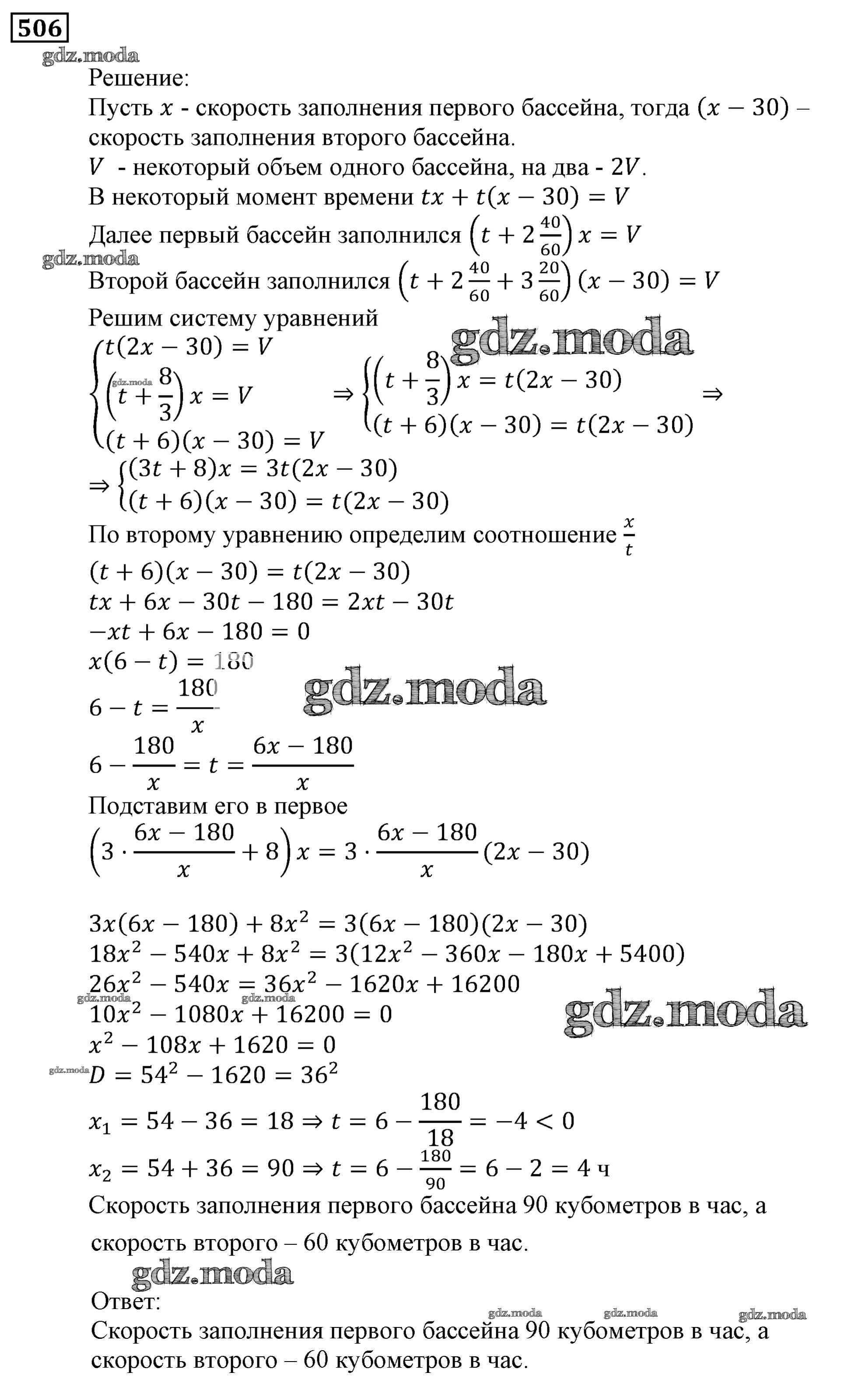 ОТВЕТ на задание № 506 Учебник по Алгебре 9 класс Мерзляк Алгоритм успеха