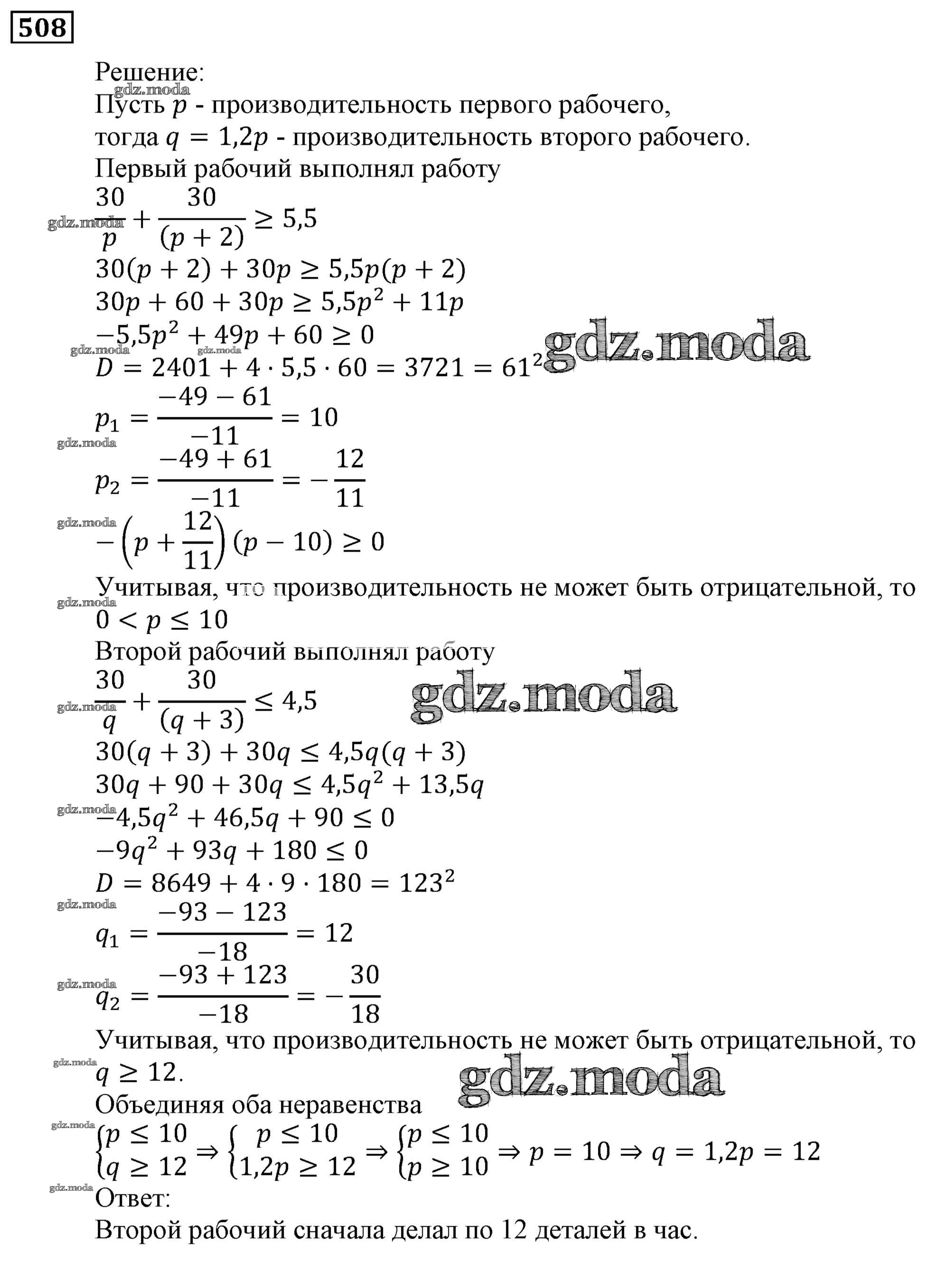 ОТВЕТ на задание № 508 Учебник по Алгебре 9 класс Мерзляк Алгоритм успеха