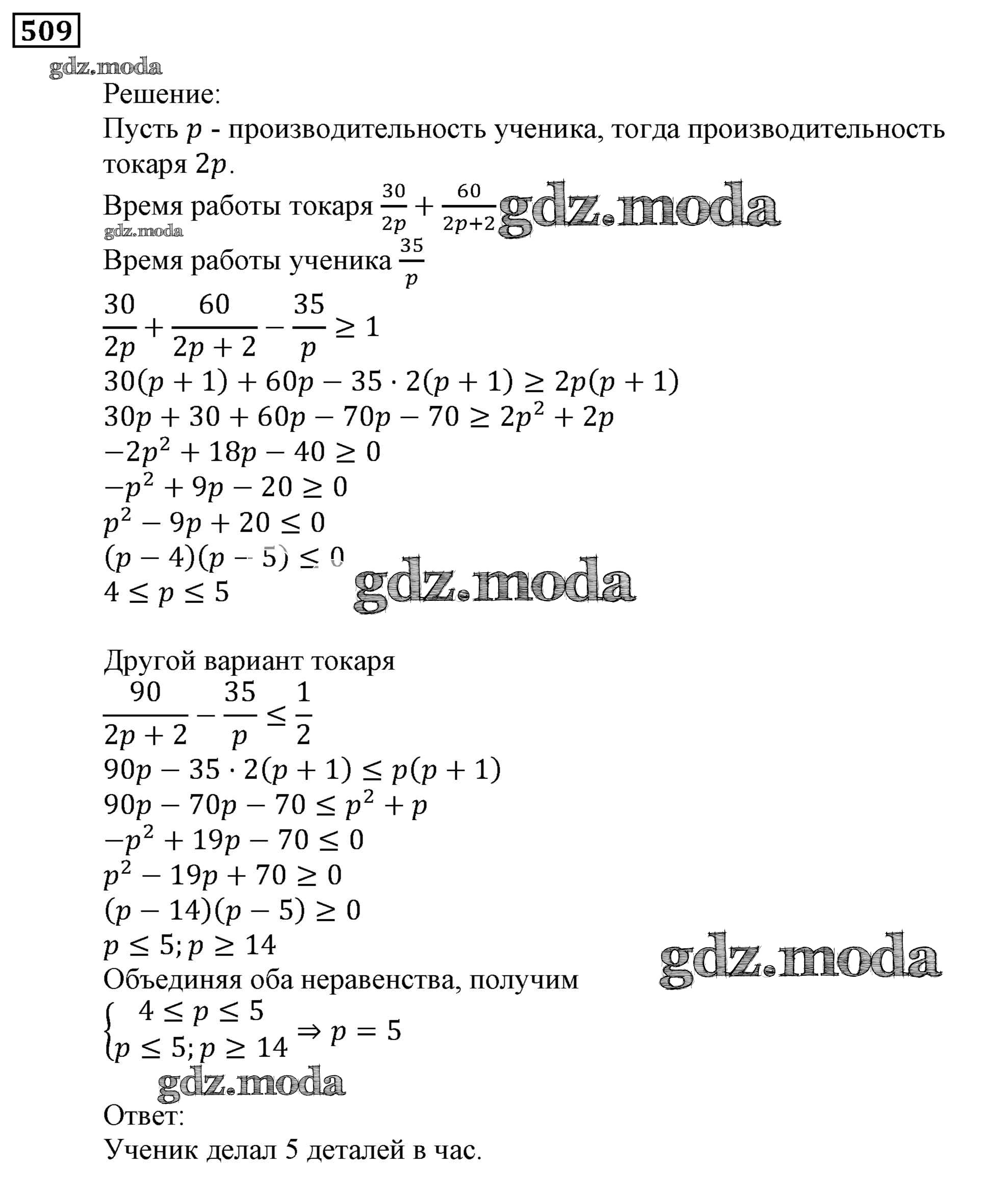 ОТВЕТ на задание № 509 Учебник по Алгебре 9 класс Мерзляк Алгоритм успеха