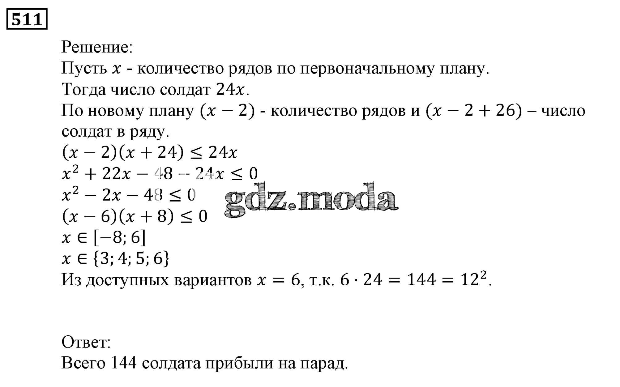 ОТВЕТ на задание № 511 Учебник по Алгебре 9 класс Мерзляк Алгоритм успеха