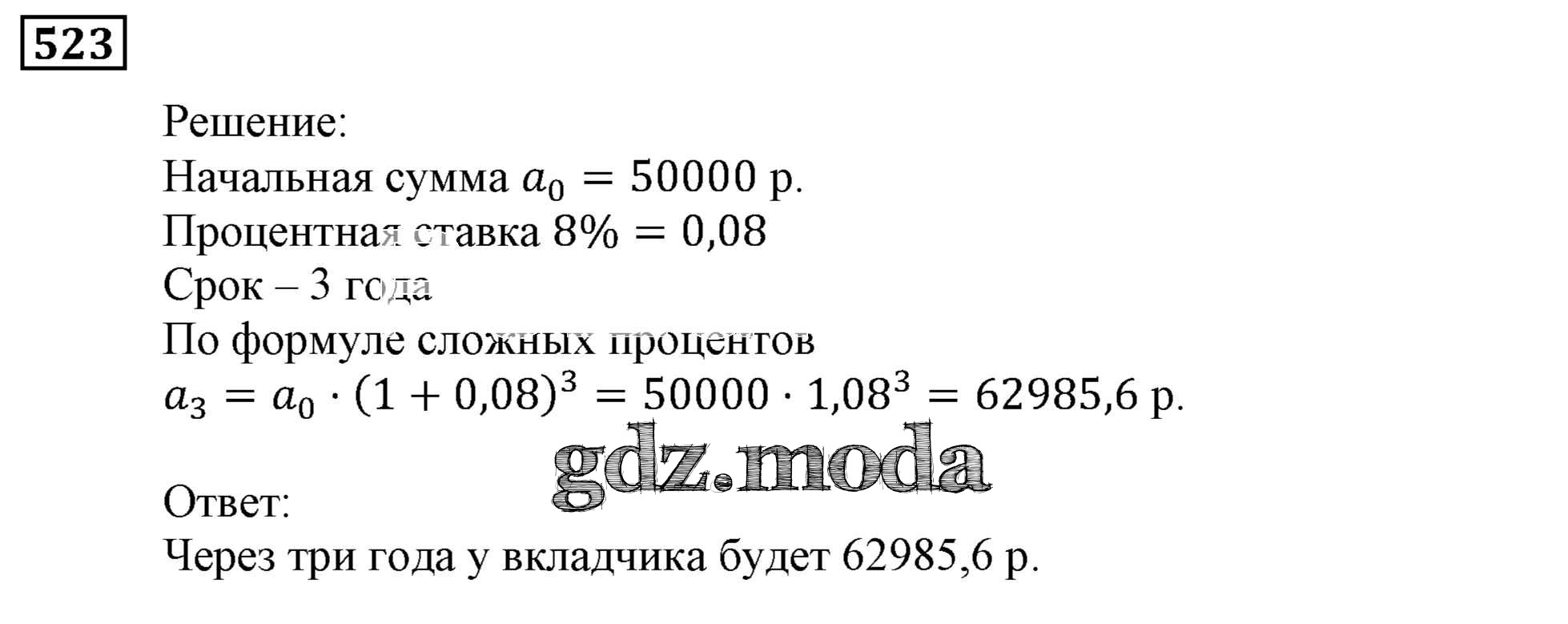 ОТВЕТ на задание № 523 Учебник по Алгебре 9 класс Мерзляк Алгоритм успеха