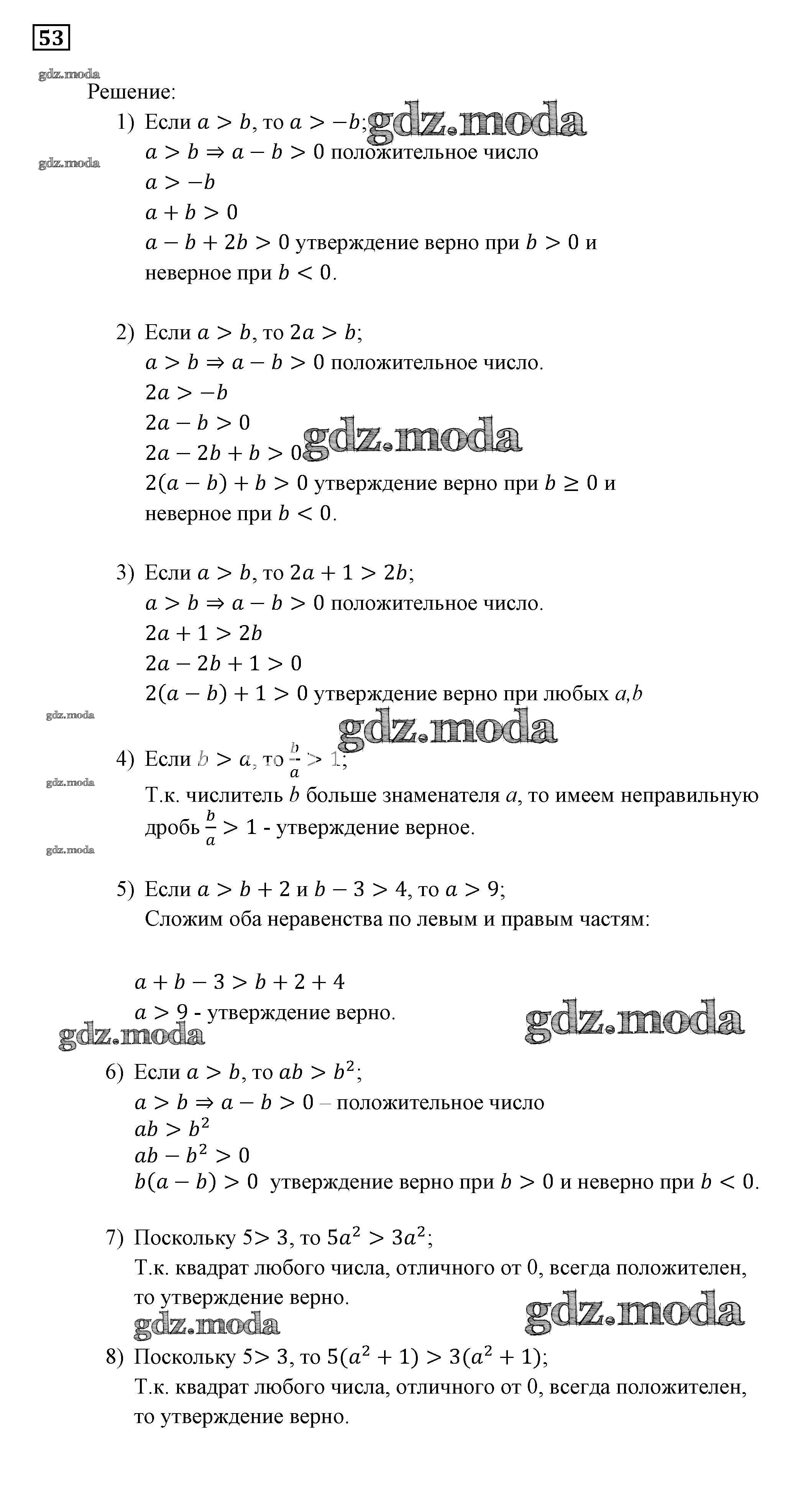 ОТВЕТ на задание № 53 Учебник по Алгебре 9 класс Мерзляк Алгоритм успеха