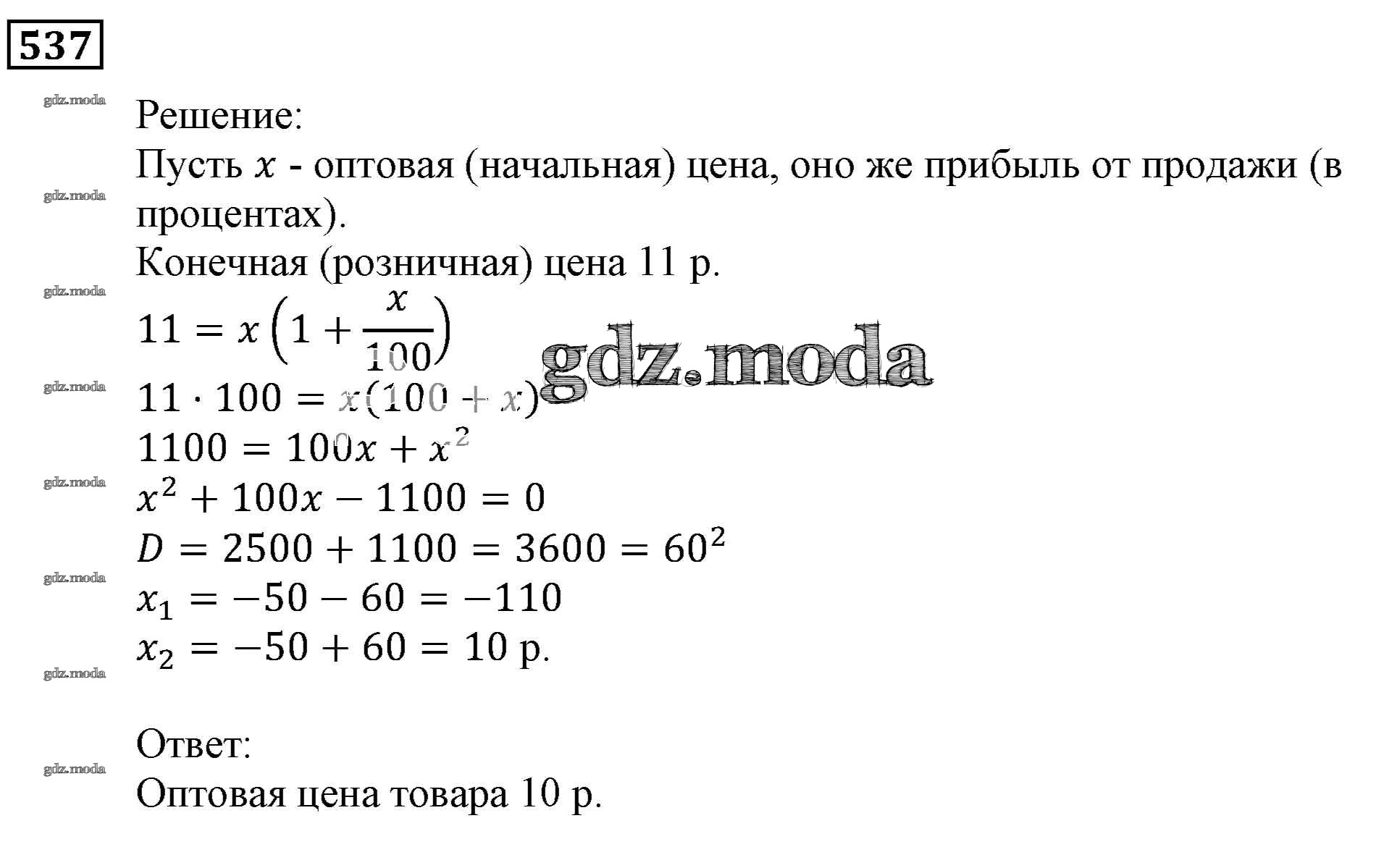 ОТВЕТ на задание № 537 Учебник по Алгебре 9 класс Мерзляк Алгоритм успеха