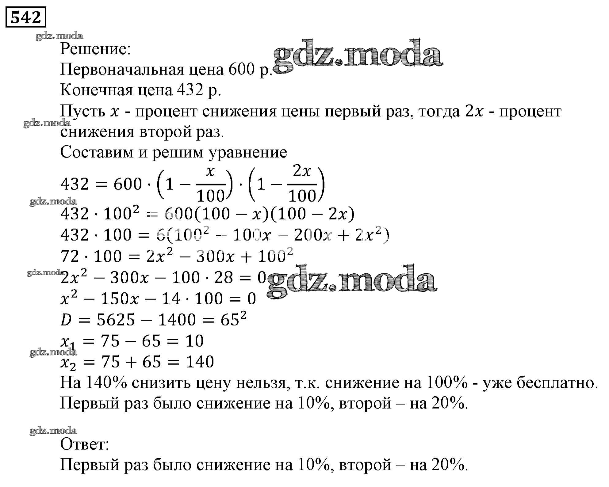ОТВЕТ на задание № 542 Учебник по Алгебре 9 класс Мерзляк Алгоритм успеха