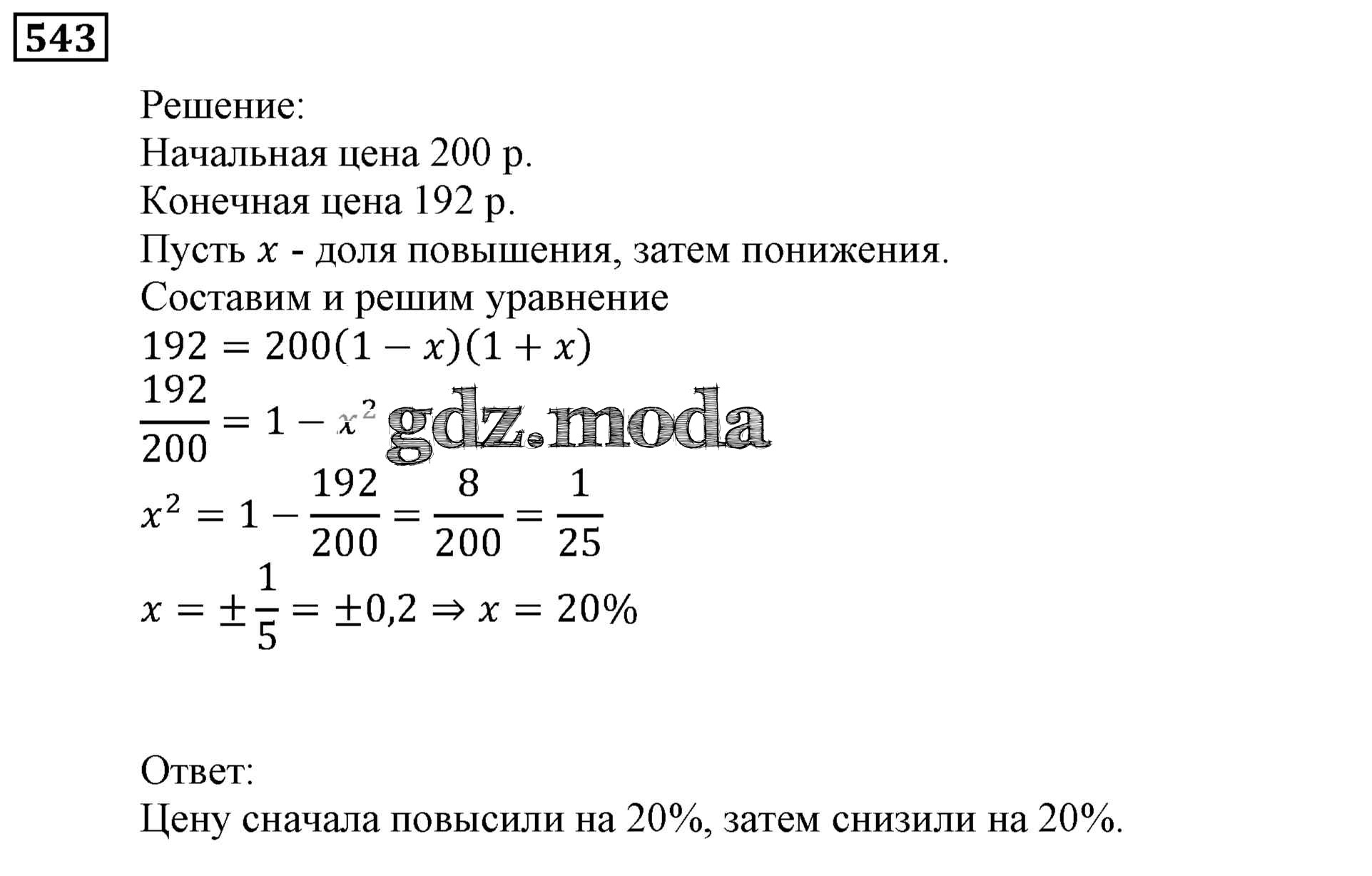 ОТВЕТ на задание № 543 Учебник по Алгебре 9 класс Мерзляк Алгоритм успеха