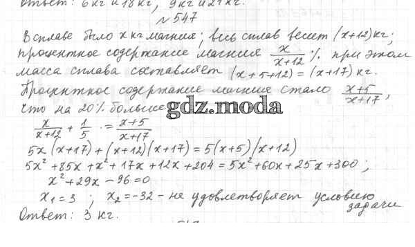 ОТВЕТ на задание № 547 Учебник по Алгебре 9 класс Мерзляк Алгоритм успеха