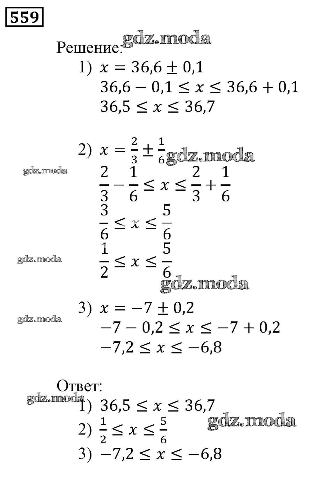 ОТВЕТ на задание № 559 Учебник по Алгебре 9 класс Мерзляк Алгоритм успеха