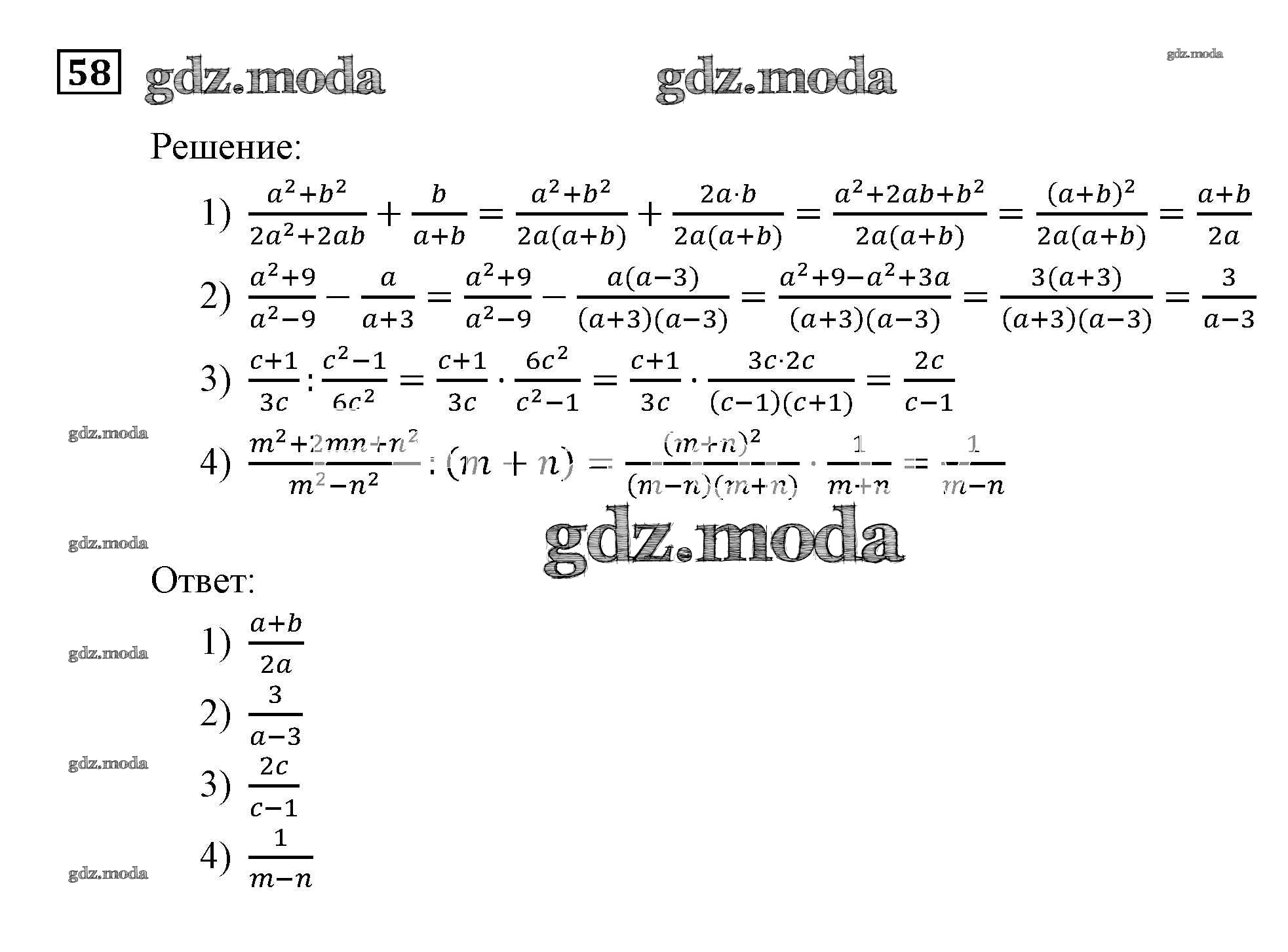 ОТВЕТ на задание № 58 Учебник по Алгебре 9 класс Мерзляк Алгоритм успеха