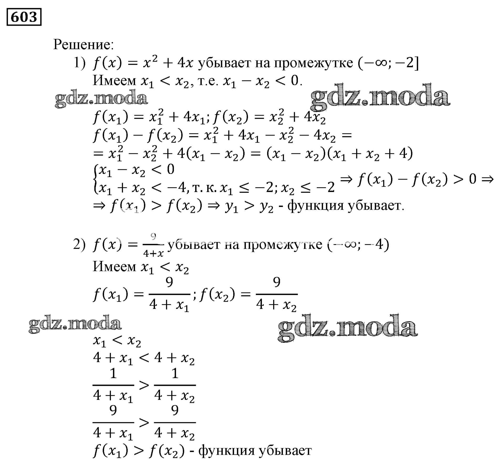 ОТВЕТ на задание № 603 Учебник по Алгебре 9 класс Мерзляк Алгоритм успеха