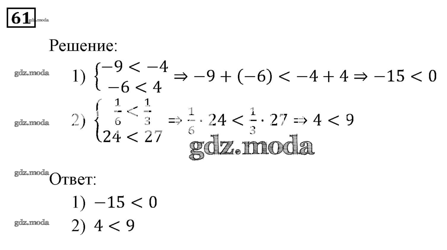 ОТВЕТ на задание № 61 Учебник по Алгебре 9 класс Мерзляк Алгоритм успеха
