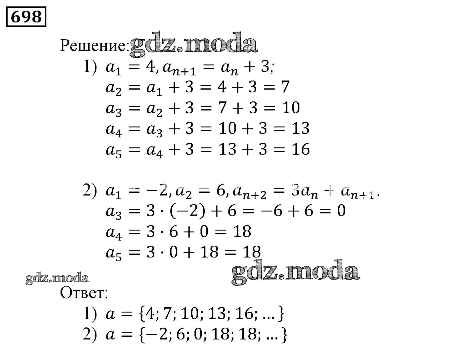 ОТВЕТ на задание № 698 Учебник по Алгебре 9 класс Мерзляк Алгоритм успеха