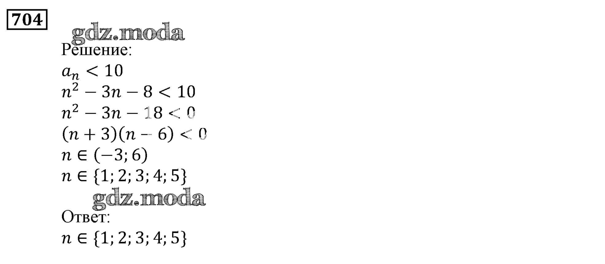 ОТВЕТ на задание № 704 Учебник по Алгебре 9 класс Мерзляк Алгоритм успеха
