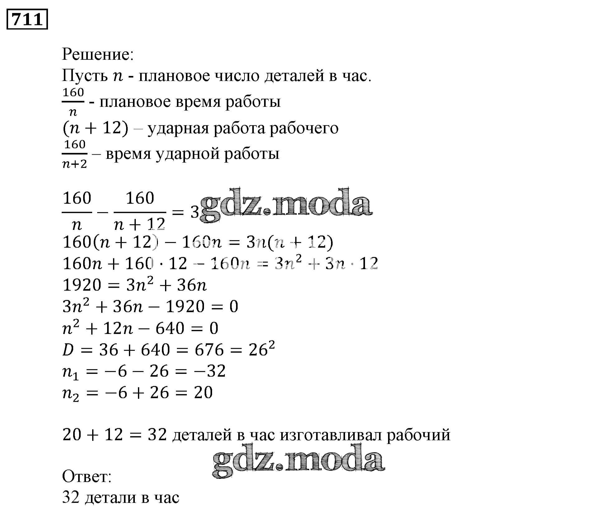 ОТВЕТ на задание № 711 Учебник по Алгебре 9 класс Мерзляк Алгоритм успеха